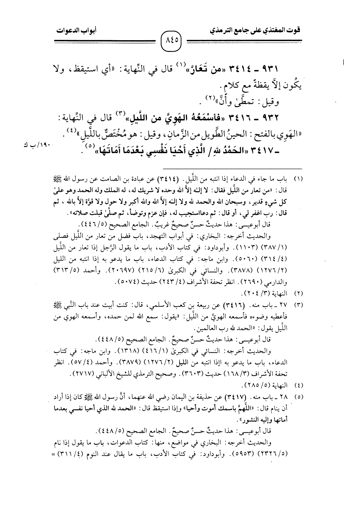 931 -[3414] "من تَعَارَّ" قال في النِّهاية: " أي استيقظ، ولا يكُون إلاَّ يقظةً مع كلامٍ.