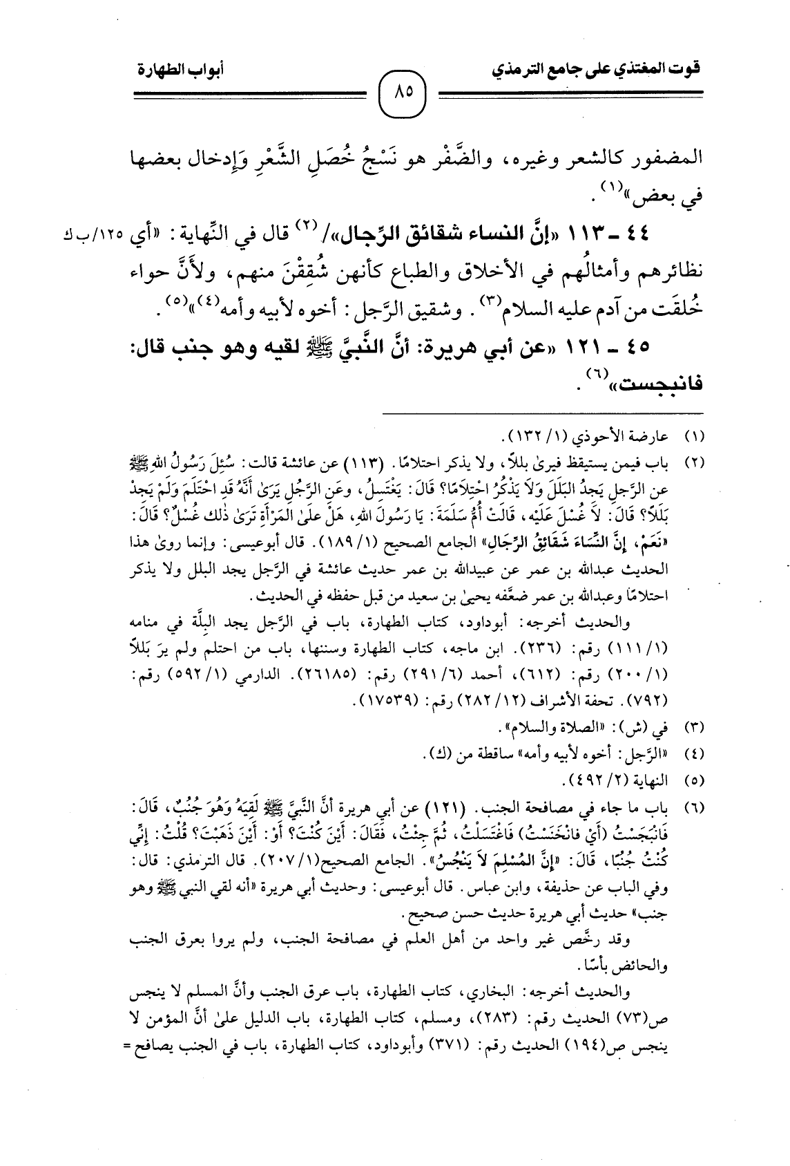 45 -[121] " عن أبي هريرة: أن النَّبيَّ - صَلَّى اللَّهُ عَلَيْهِ وَسَلَّمَ - لقيه وهو جنب قال: فانبجست " (¬1) .
