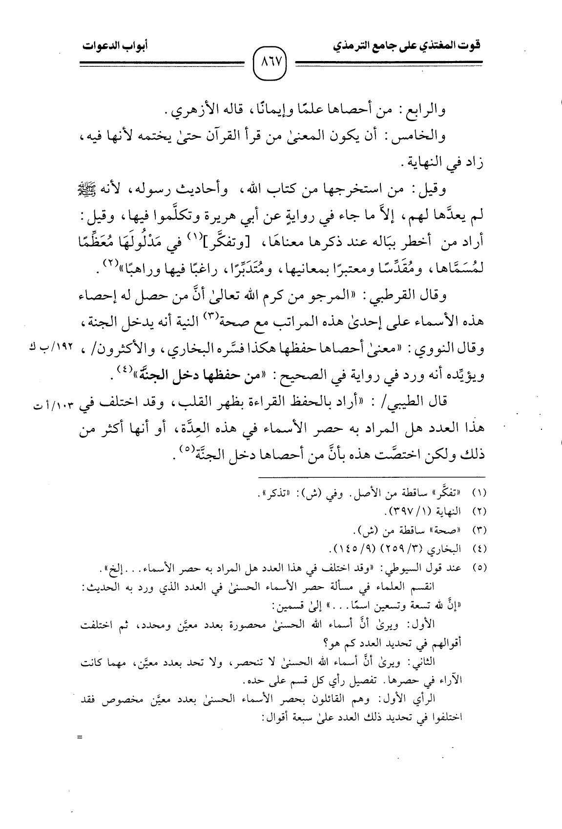قال الطيبي: " أراد بالحفظ القراءة بظهر القلب، وقد اختلف في هذا العدد هل المراد به حصر الأسماء في هذه العِدَّة، أو أنها أكثر من ذلك ولكن اختصَّت هذه بأنَّ من أحصاها دخل الجنَّة.