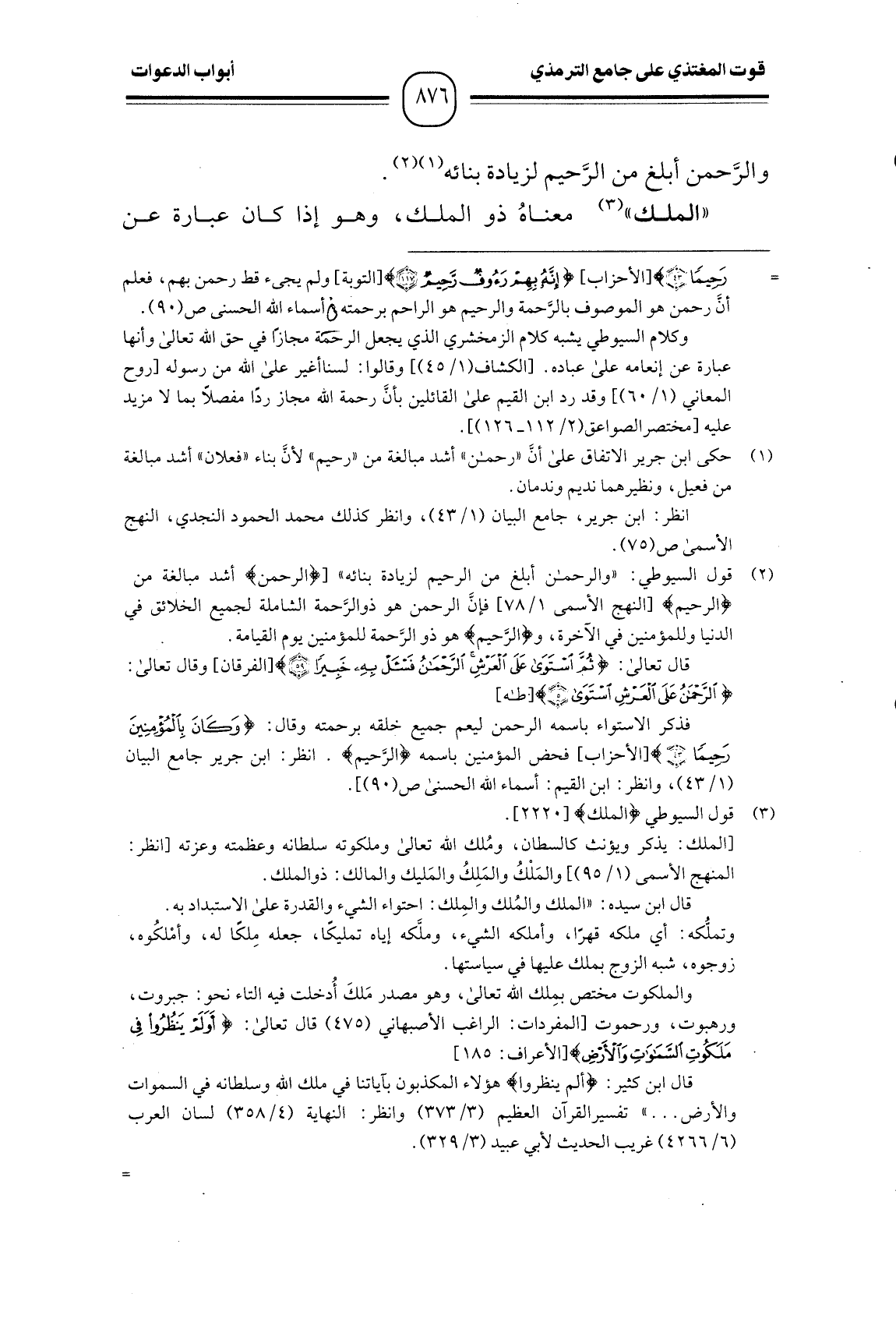 "الملك" معناهُ ذو الملك، وهو إذا كان عبارة عن