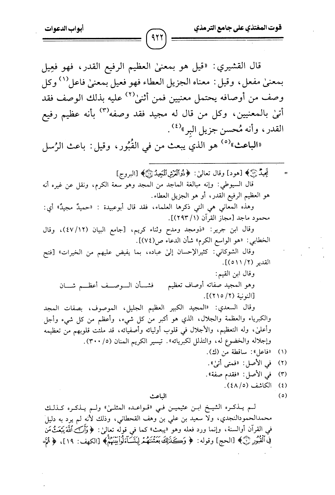 قال القشيري: "قيل هو بمعنى العظيم الرفيع القدر، فهو فعِيل بمعنى مفعل، وقيل: معناه الجزيل العطاء فهو فعيل بمعنى فاعل وكل وصف من أوصافه يحتمل معنيين فمن أثنى عليه بذلك الوصف فقد أتى بالمعنيين، وكل من قال له مجيد فقد وصفه بأنه عظيم رفيع القدر، وأنه مُحسن جزيل البِر".