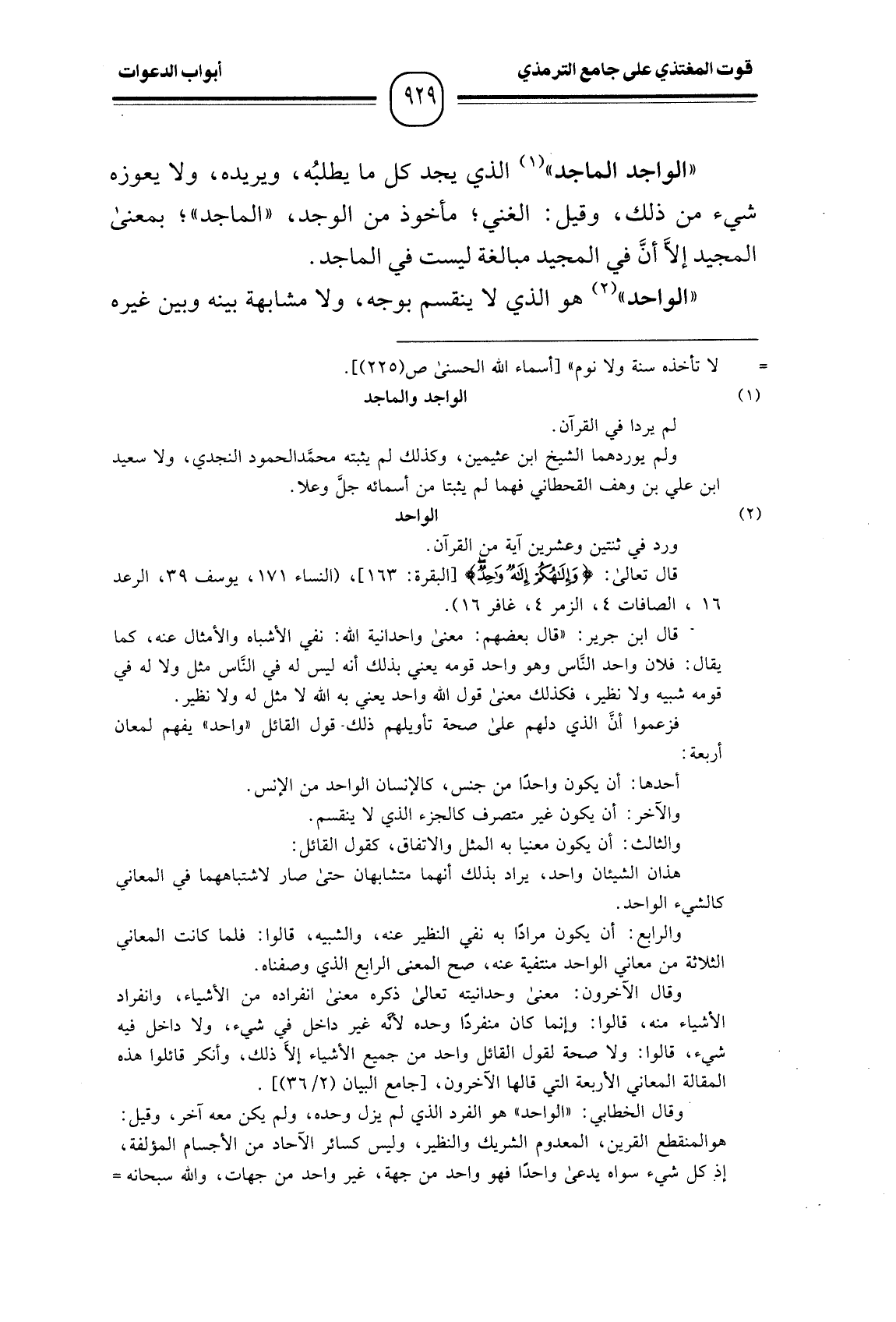 "الواحد" هو الذي لا ينقسم بوجه، ولا مشابهة بينه وبين غيره