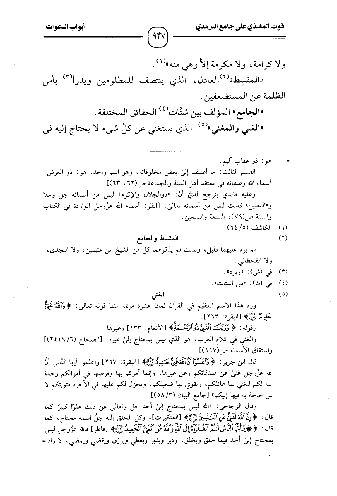 "الغني والمغني" الذي يستغني عن كلِّ شيء لا يحتاج إليه في