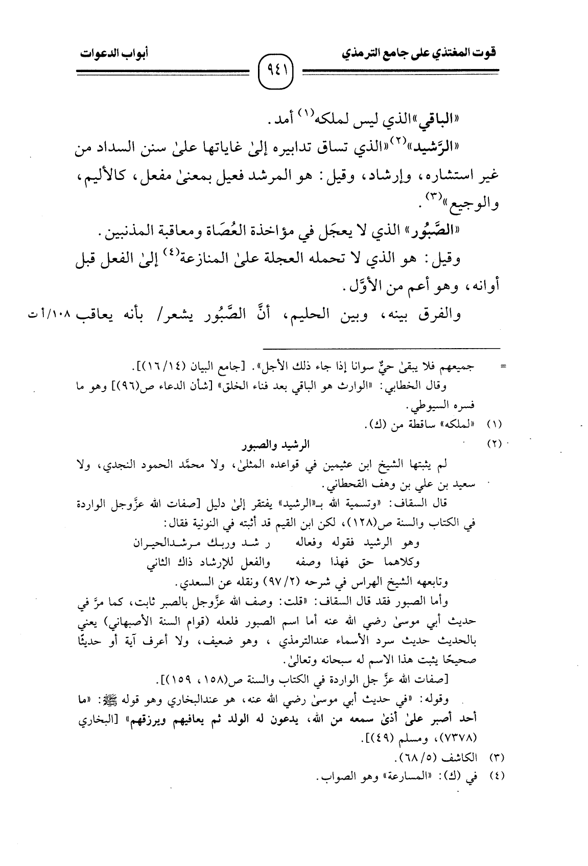 "الصَّبُور" الذي لا يعجَل في مؤاخذة العُصَاة ومعاقبة المذنبين.