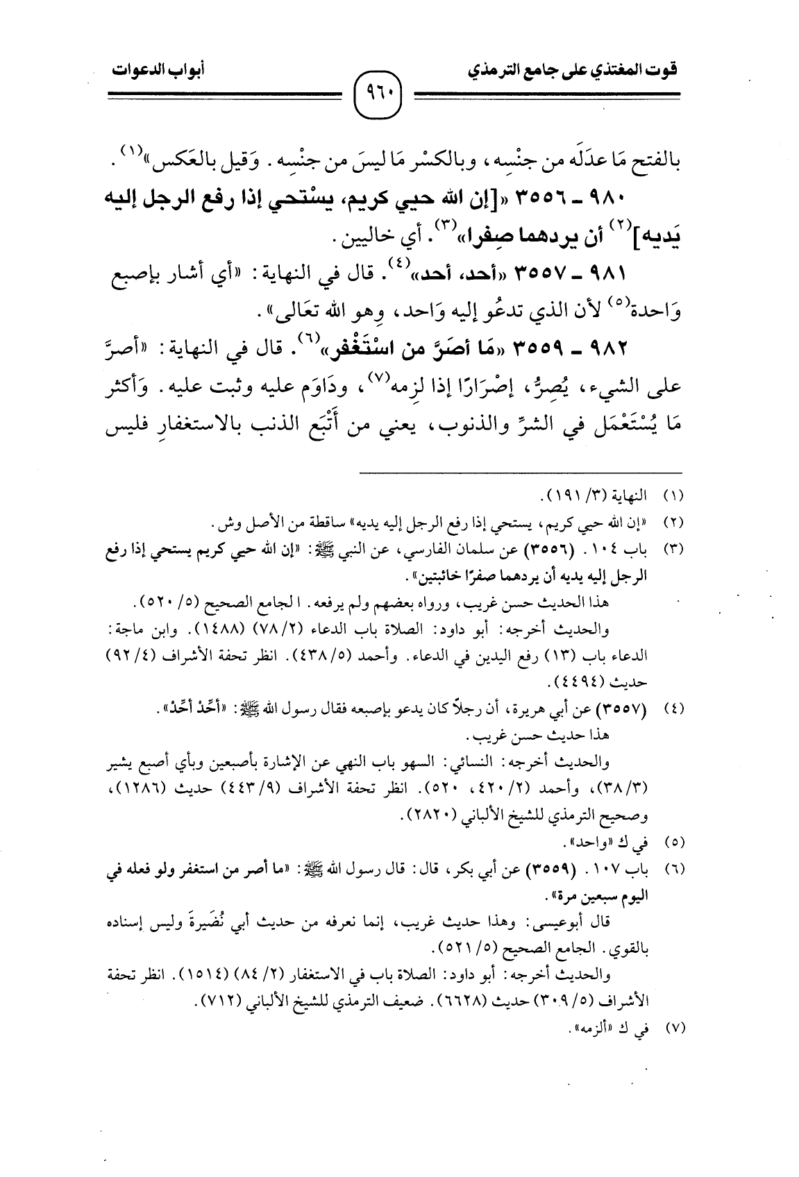 980 -[3556] " [إن الله حيي كريم، يسْتحي إذا رفع الرجل إليه يَديه] أن يردهما صِفرا ". أي خاليين.