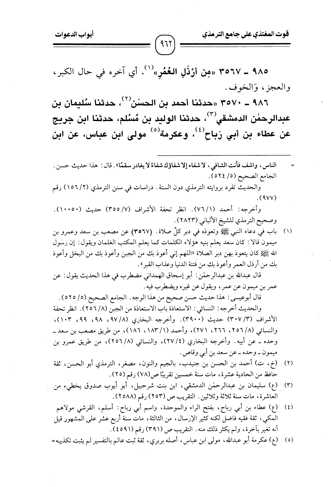 986 -[3570] "حدثثا أحمد بن الحسَن، حدثثا سُليمان بن عبد الرحمن الدمشقي، حدثنا الوليد بن مُسْلم، حدثنا ابن جريج عن عطاء بن أبي رَباح، وعكرمة مولى ابن عباس، عن ابن