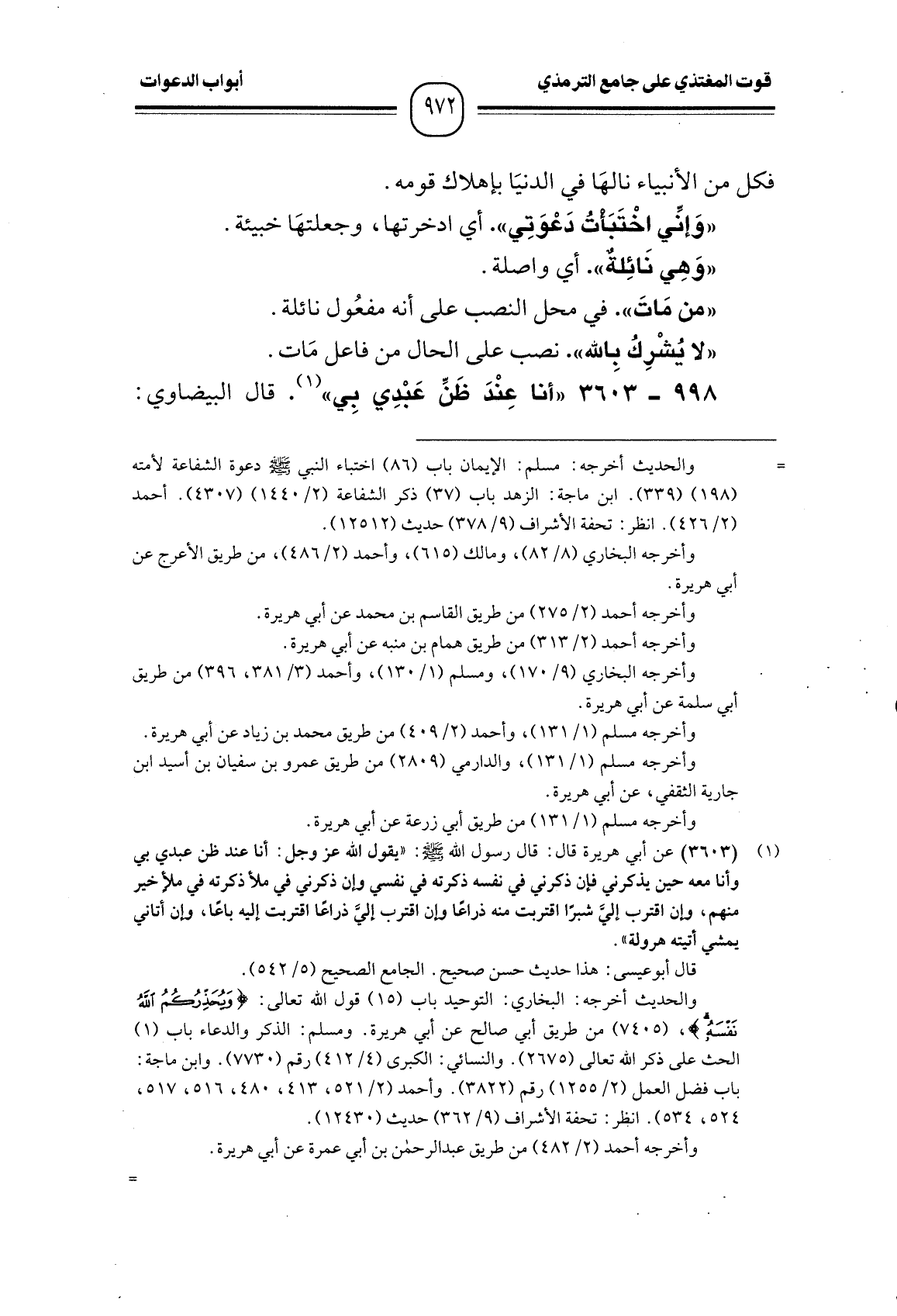 998 -[3603] "أنا عِنْدَ ظَنِّ عَبْدِي بِي". قال البيضاوي: