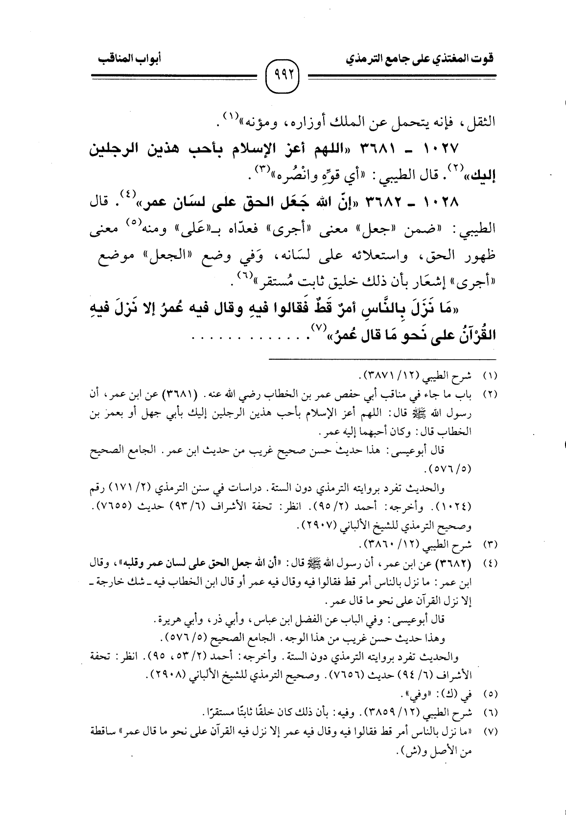 1027 -[3681] "اللهم أعز الإسلام بأحب هذين الرجلين إليك". قال الطيبي: " أي قوِّهِ وانْصُره ".