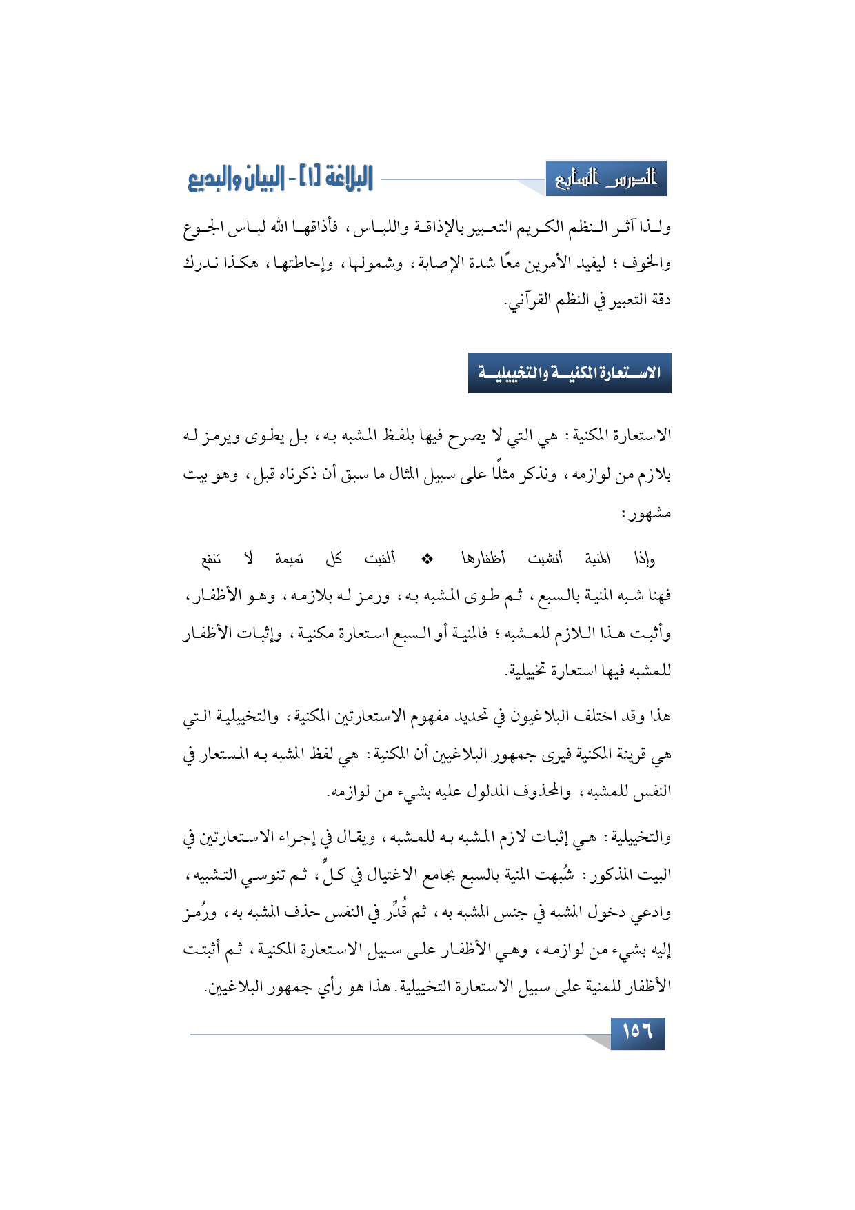 ولنا عودة بمشيئة الله تعالى للحديث عن الاستعارة التصريحية لكثرة تشعبها ولكثرة أقسامها.