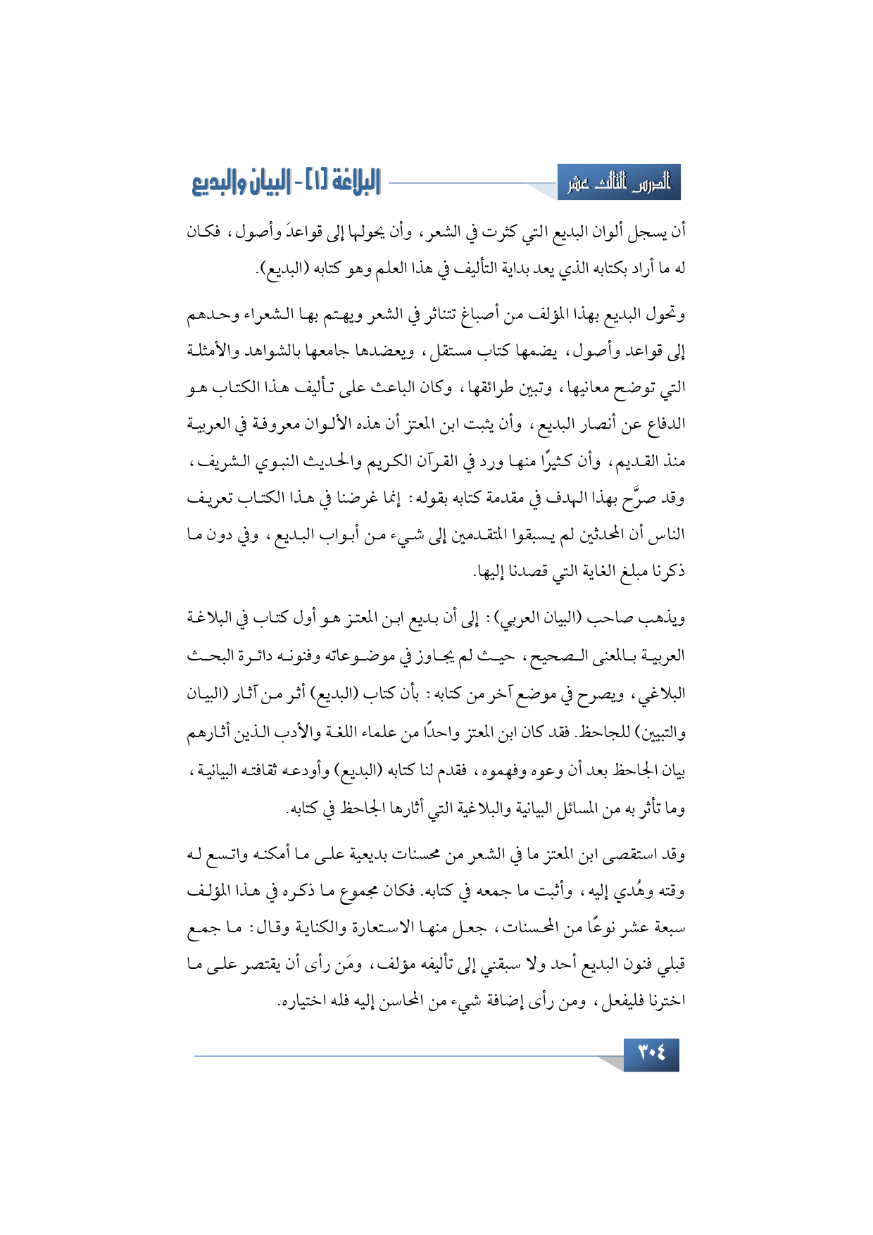 وتحول البديع بهذا المؤلف من أصباغ تتناثر في الشعر ويهتم بها الشعراء وحدهم إلى قواعد وأصول، يضمها كتاب مستقل، ويعضدها جامعها بالشواهد والأمثلة التي توضح معانيها، وتبين طرائقها، وكان الباعث على تأليف هذا الكتاب هو الدفاع عن أنصار البديع، وأن يثبت ابن المعتز أن هذه الألوان معروفة في العربية منذ القديم، وأن كثيرًا منها ورد في القرآن الكريم والحديث النبوي الشريف، وقد صرَّح بهذا الهدف في مقدمة كتابه بقوله: إنما غرضنا في هذا الكتاب تعريف الناس أن المحدثين لم يسبقوا المتقدمين إلى شيء من أبواب البديع، وفي دون ما ذكرنا مبلغ الغاية التي قصدنا إليها.