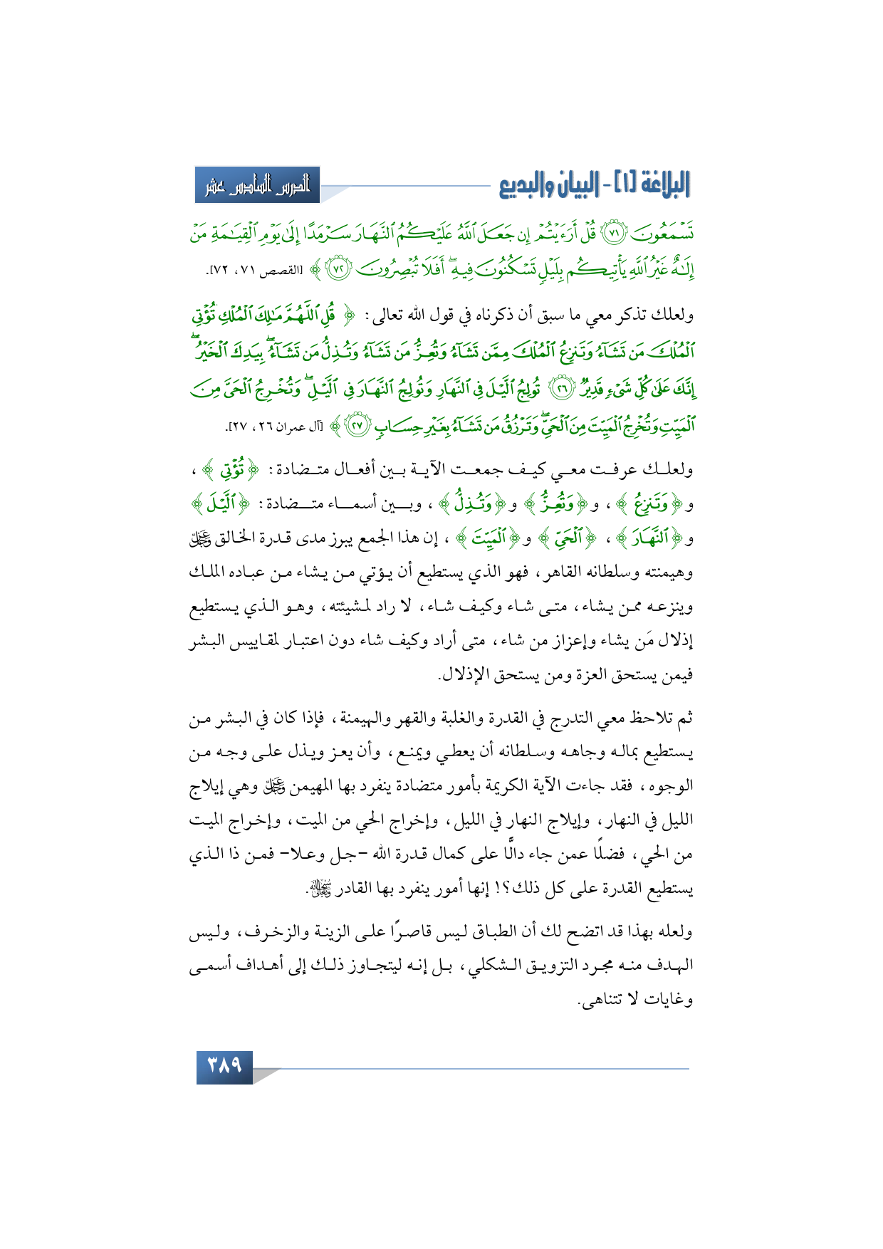 ولعلك تذكر معي ما سبق أن ذكرناه في قول الله تعالى: {قُلِ اللَّهُمَّ مَالِكَ الْمُلْكِ تُؤْتِي الْمُلْكَ مَنْ تَشَاءُ وَتَنْزِعُ الْمُلْكَ مِمَّنْ تَشَاءُ وَتُعِزُّ مَنْ تَشَاءُ وَتُذِلُّ مَنْ تَشَاءُ بِيَدِكَ الْخَيْرُ إِنَّكَ عَلَى كُلِّ شَيْءٍ قَدِيرٌ * تُولِجُ اللَّيْلَ فِي النَّهَارِ وَتُولِجُ النَّهَارَ فِي اللَّيْلِ وَتُخْرِجُ الْحَيَّ مِنَ الْمَيِّتِ وَتُخْرِجُ الْمَيِّتَ مِنَ الْحَيِّ وَتَرْزُقُ مَنْ تَشَاءُ بِغَيْرِ حِسَابٍ} (آل عمران 26، 27).