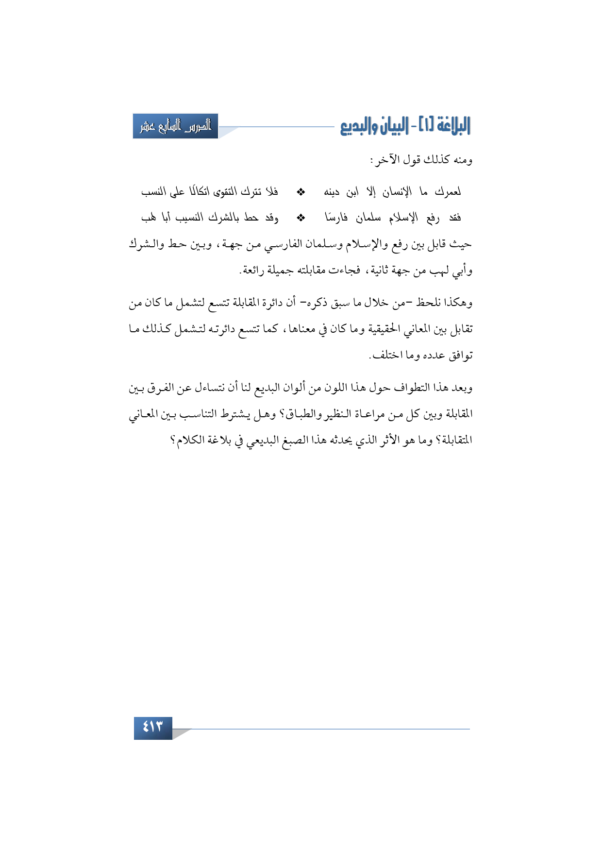 فقد رفع الإسلام سلمان فارسًا ... وقد حط بالشرك النسيب أبو لهب