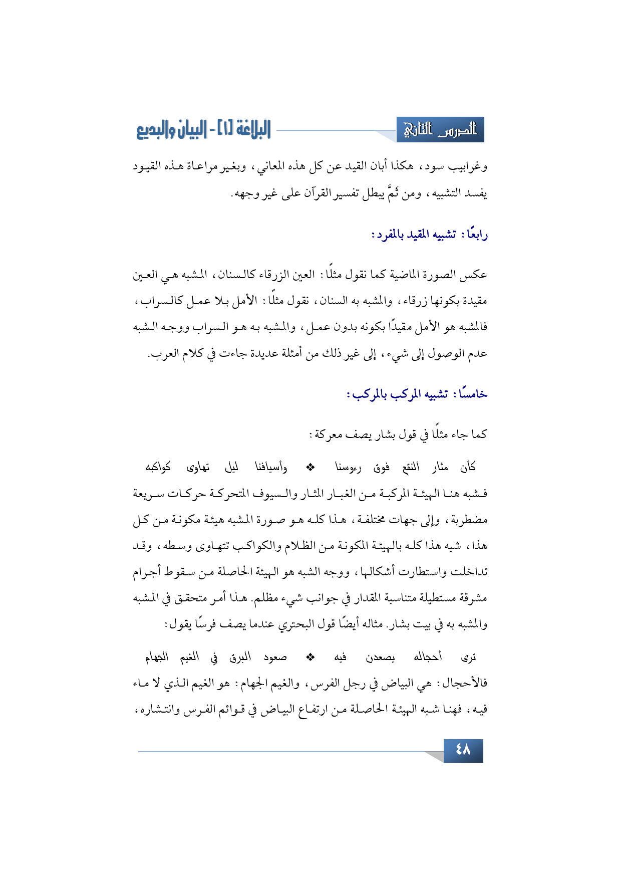 الصورة الخامسة من صور أقسام التشبيه باعتبار الإفراد، والتقييد، والتركيب للطرفين تشبيه المركب بالمركب: كما جاء مثلًا في قول بشار يصف معركة: