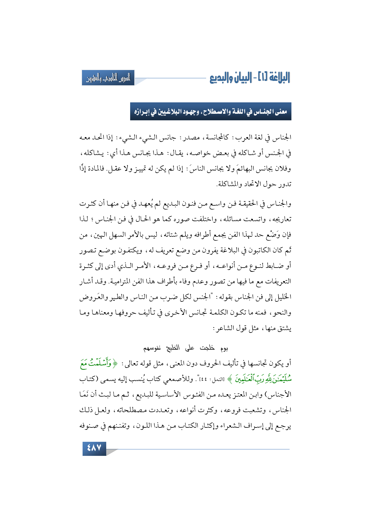 معنى الجناس في اللغة والاصطلاح، وجهود البلاغيين في إبرازه