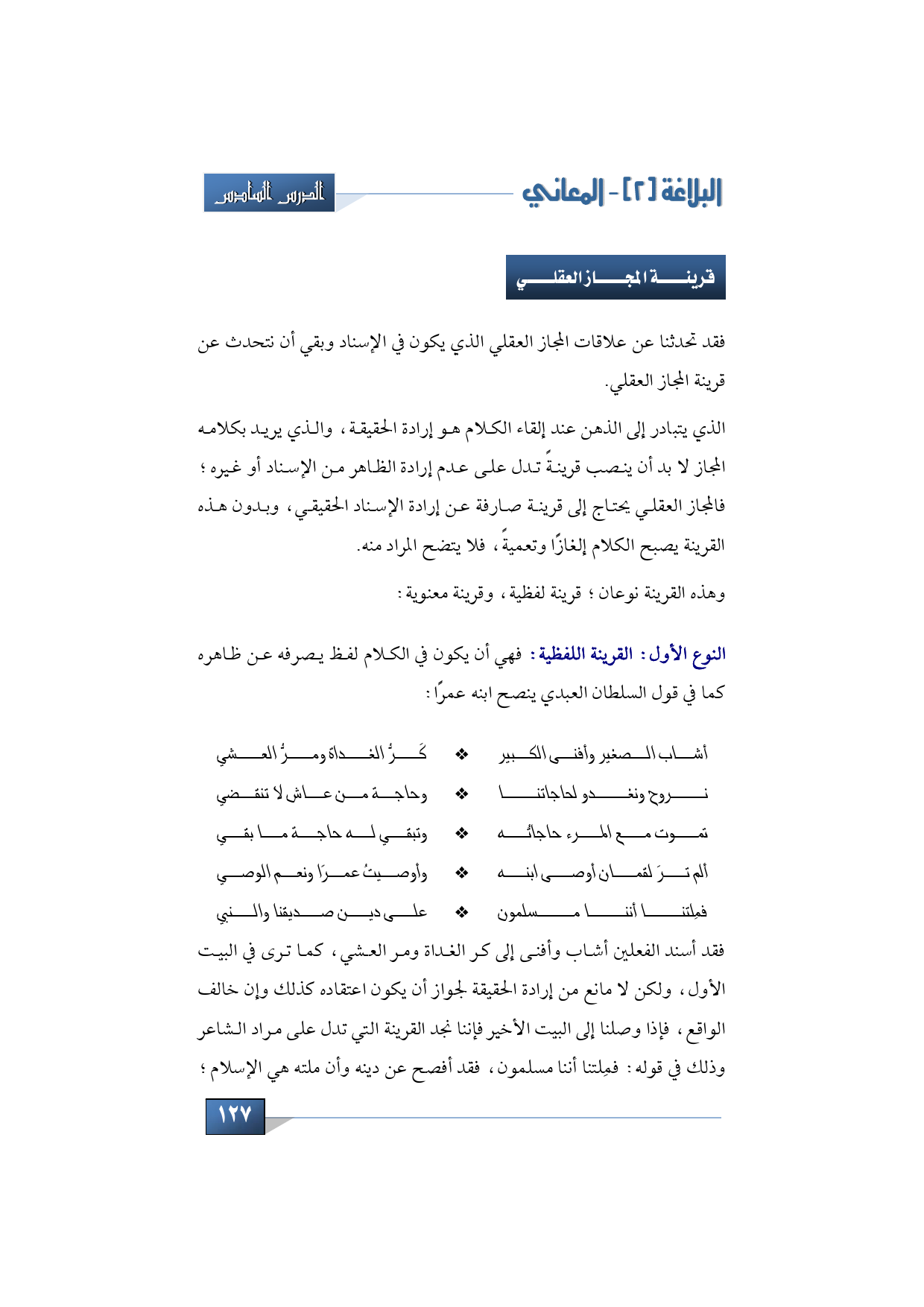 فقد عشنا مع علاقات المجاز العقلي الذي يكون في الإسناد وبقي أن نتكلم عن قرينة المجاز العقلي.