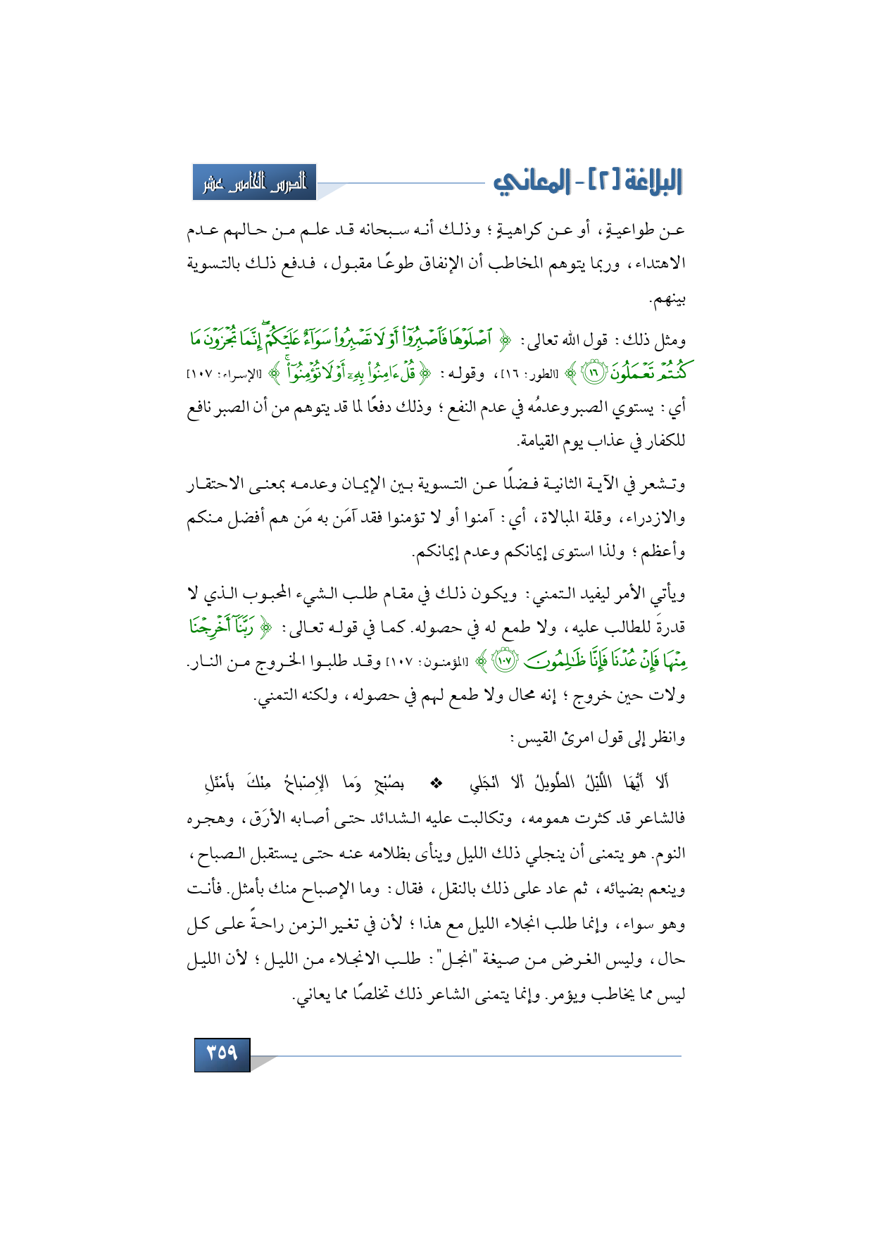 وتشعر في الآية الثانية فضلًا عن التسوية بين الإيمان وعدمه بمعنى الاحتقار والازدراء، وقلة المبالاة، أي: آمنوا أو لا تؤمنوا فقد آمَن به مَن هم أفضل منكم وأعظم؛ ولذا استوى إيمانكم وعدم إيمانكم.