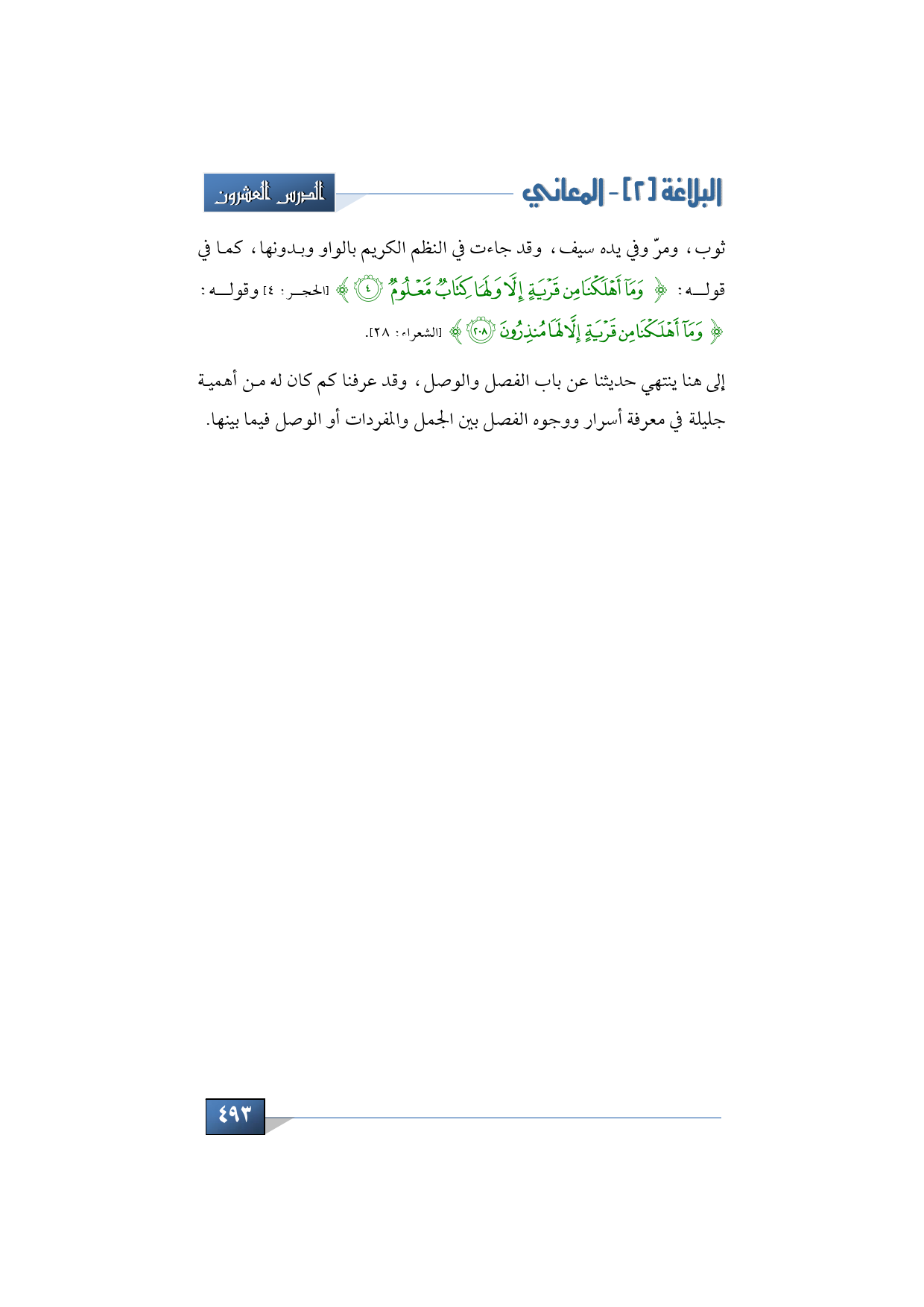 إلى هنا ينتهي حديثنا عن باب الفصل والوصل، وقد عرفنا كم كان له من أهمية جليلة في معرفة أسرار ووجوه الفصل بين الجمل والمفردات أو الوصل فيما بينها.