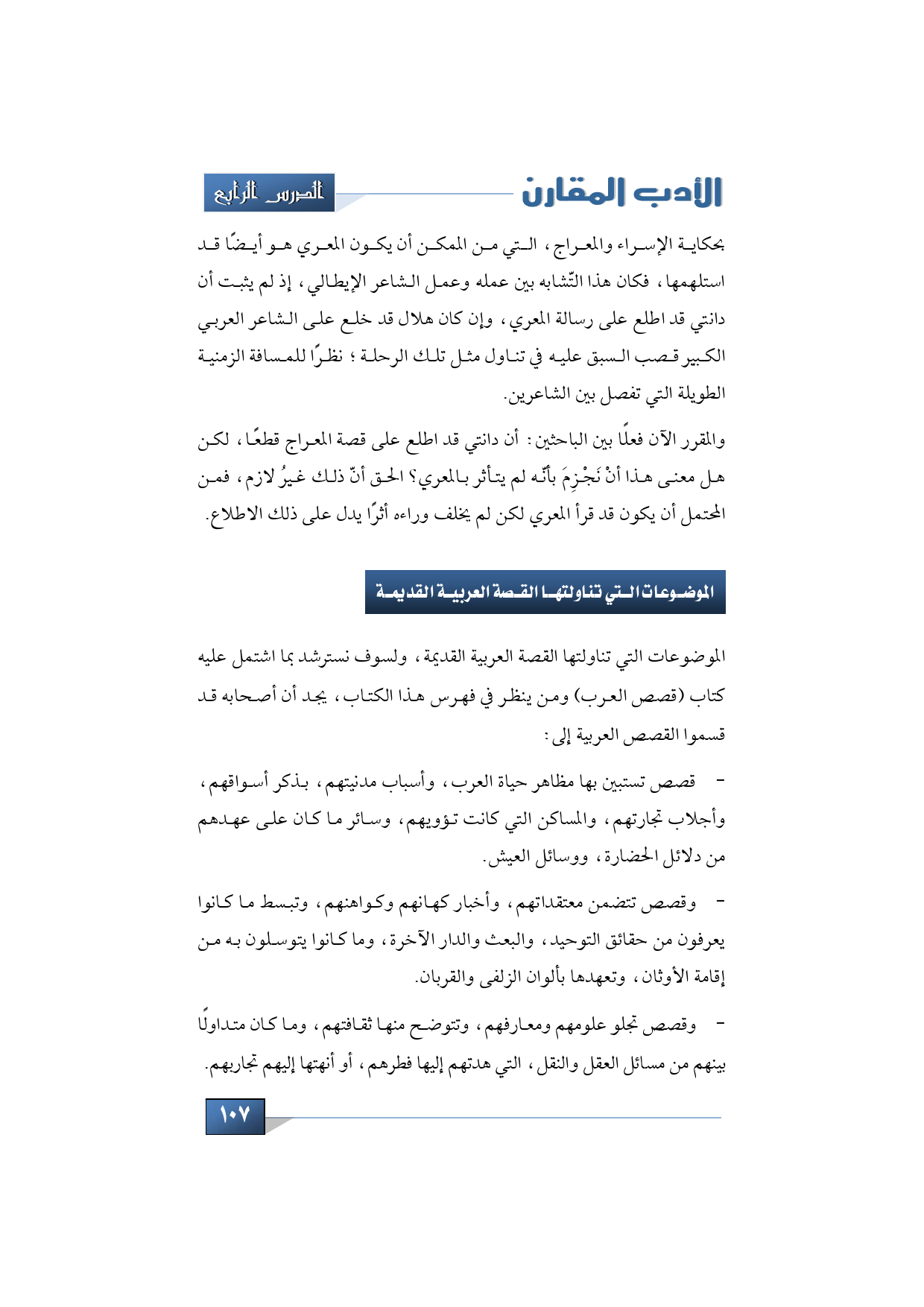 بحكاية الإسراء والمعراج، التي من الممكن أن يكون المعري هو أيضًا قد استلهمها، فكان هذا التّشابه بين عمله وعمل الشاعر الإيطالي، إذ لم يثبت أن دانتي قد اطلع على رسالة المعري، وإن كان هلال قد خلع على الشاعر العربي الكبير قصب السبق عليه في تناول مثل تلك الرحلة؛ نظرًا للمسافة الزمنية الطويلة التي تفصل بين الشاعرين.