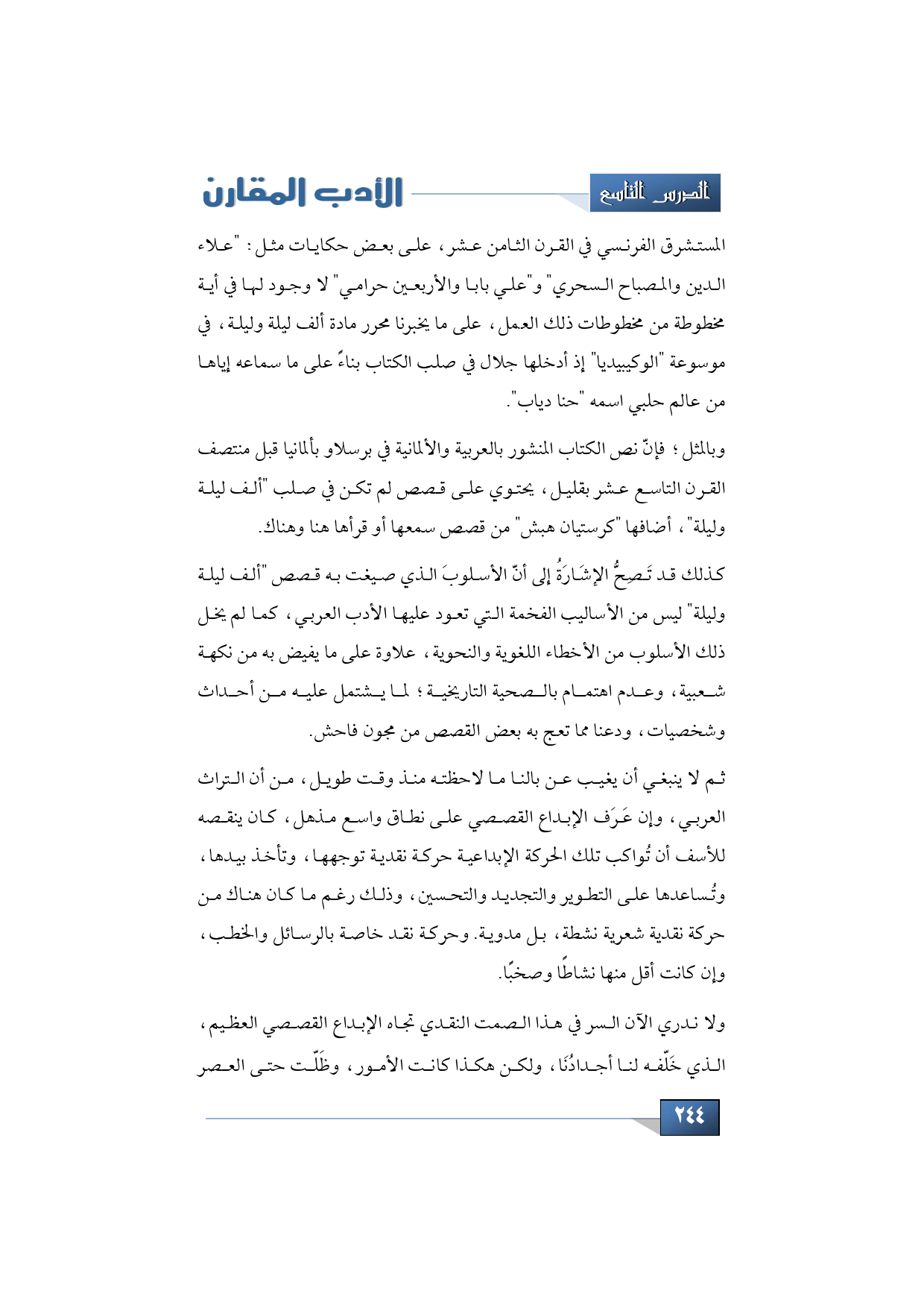 ثم لا ينبغي أن يغيب عن بالنا ما لاحظته منذ وقت طويل، من أن التراث العربي، وإن عَرَف الإبداع القصصي على نطاق واسع مذهل، كان ينقصه للأسف أن تُواكب تلك الحركة الإبداعية حركة نقدية توجهها، وتأخذ بيدها، وتُساعدها على التطوير والتجديد والتحسين، وذلك رغم ما كان هناك من حركة نقدية شعرية نشطة، بل مدوية. وحركة نقد خاصة بالرسائل والخطب، وإن كانت أقل منها نشاطًا وصخبًا.