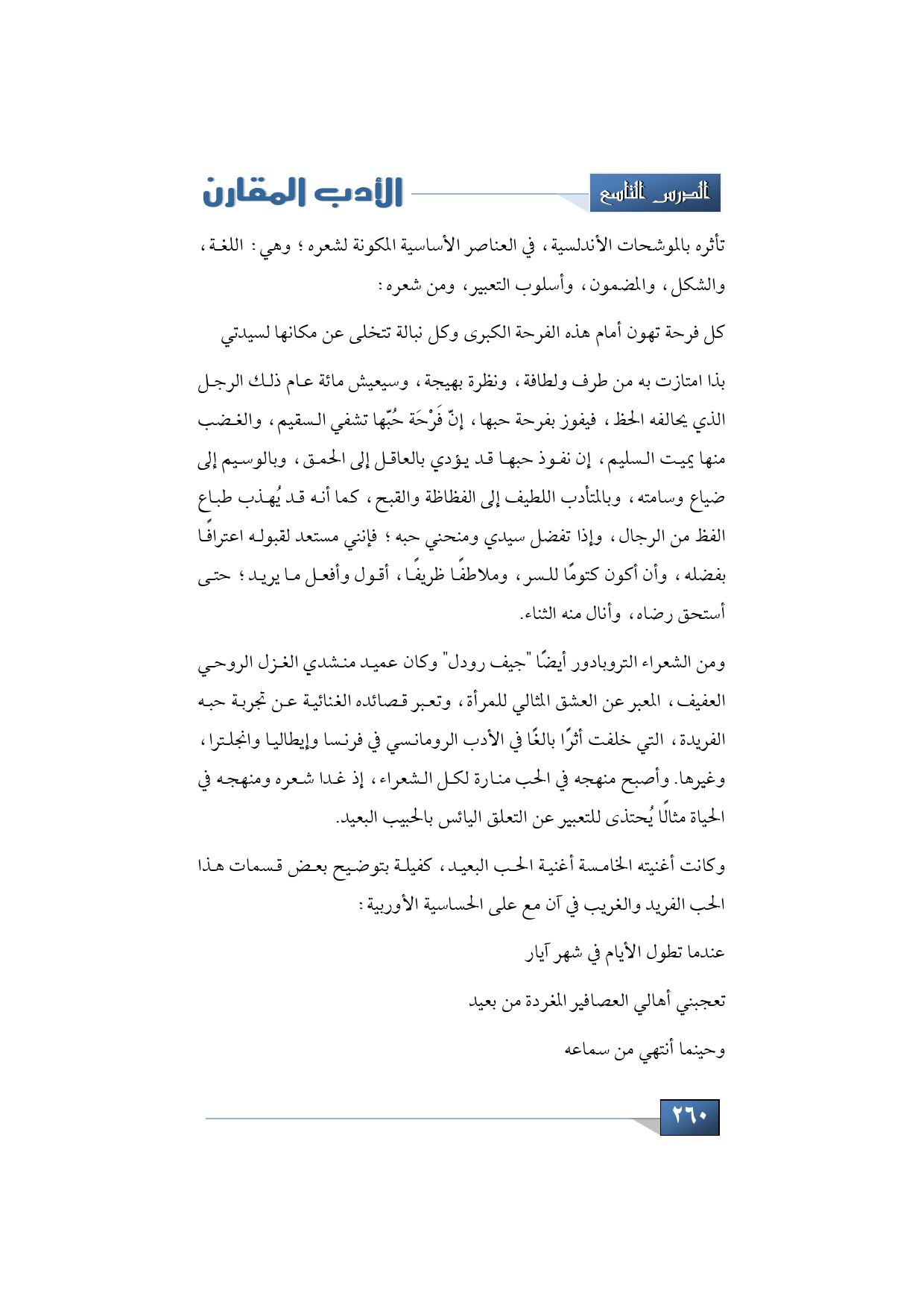 وكانت أغنيته الخامسة أغنية الحب البعيد، كفيلة بتوضيح بعض قسمات هذا الحب الفريد والغريب في آن مع على الحساسية الأوربية: