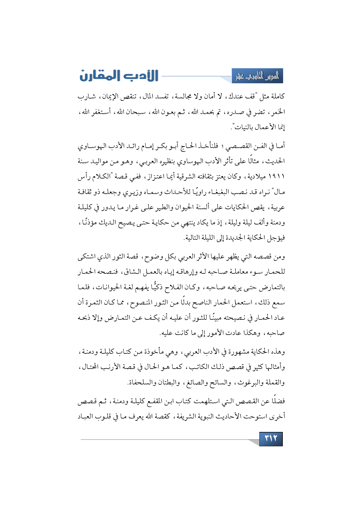 فضلًا عن القصص التي استلهمت كتاب ابن المقفع كليلة ودمنة، ثم قصص أخرى استوحت الأحاديث النبوية الشريفة، كقصة الله يعرف ما في قلوب العباد