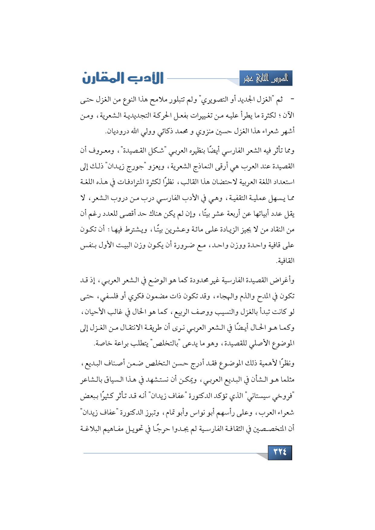ونظرًا لأهمية ذلك الموضوع فقد أدرج حسن التخلص ضمن أصناف البديع، مثلما هو الشأن في البديع العربي، ويمكن أن نستشهد في هذا السياق بالشاعر "فروخي سيستاني" الذي تؤكد الدكتورة "عفاف زيدان" أنه قد تأثر كثيرًا ببعض شعراء العرب، وعلى رأسهم أبو نواس وأبو تمام، وتبرز الدكتورة "عفاف زيدان" أن المتخصصين في الثقافة الفارسية لم يجدوا حرجًا في تحويل مفاهيم البلاغة