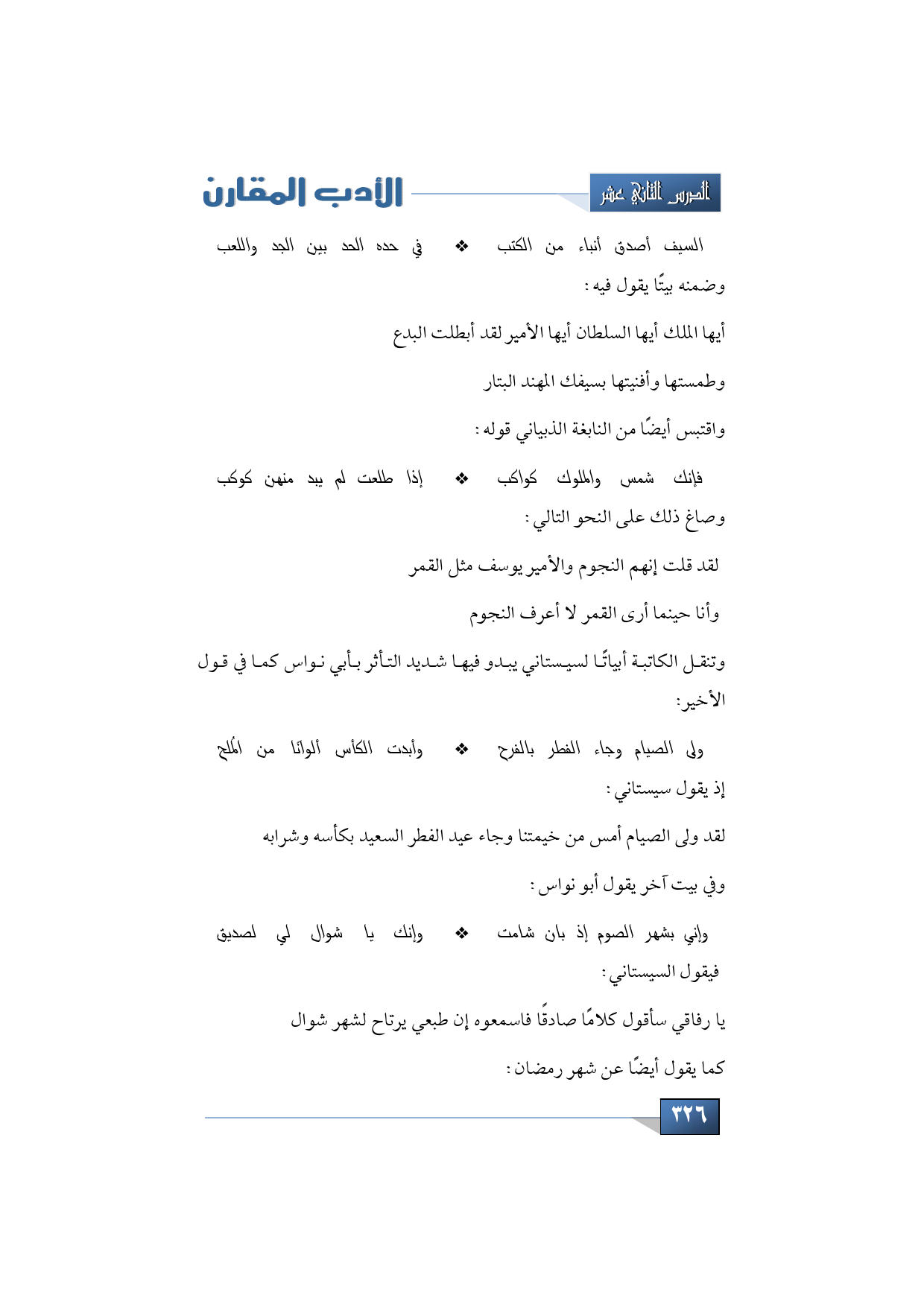 واقتبس أيضًا من النابغة الذبياني قوله: