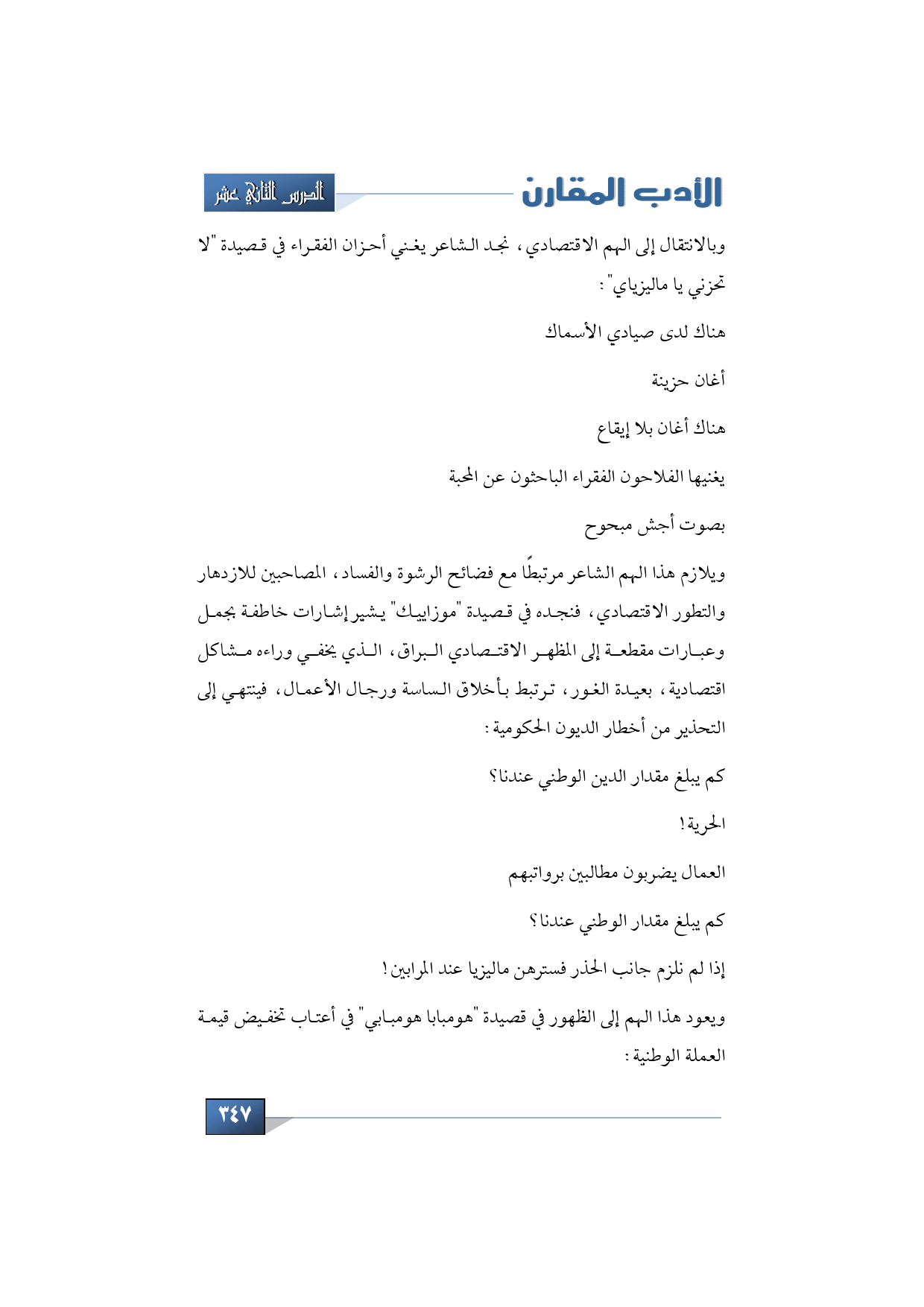 وبالانتقال إلى الهم الاقتصادي، نجد الشاعر يغني أحزان الفقراء في قصيدة "لا تحزني يا ماليزياي":