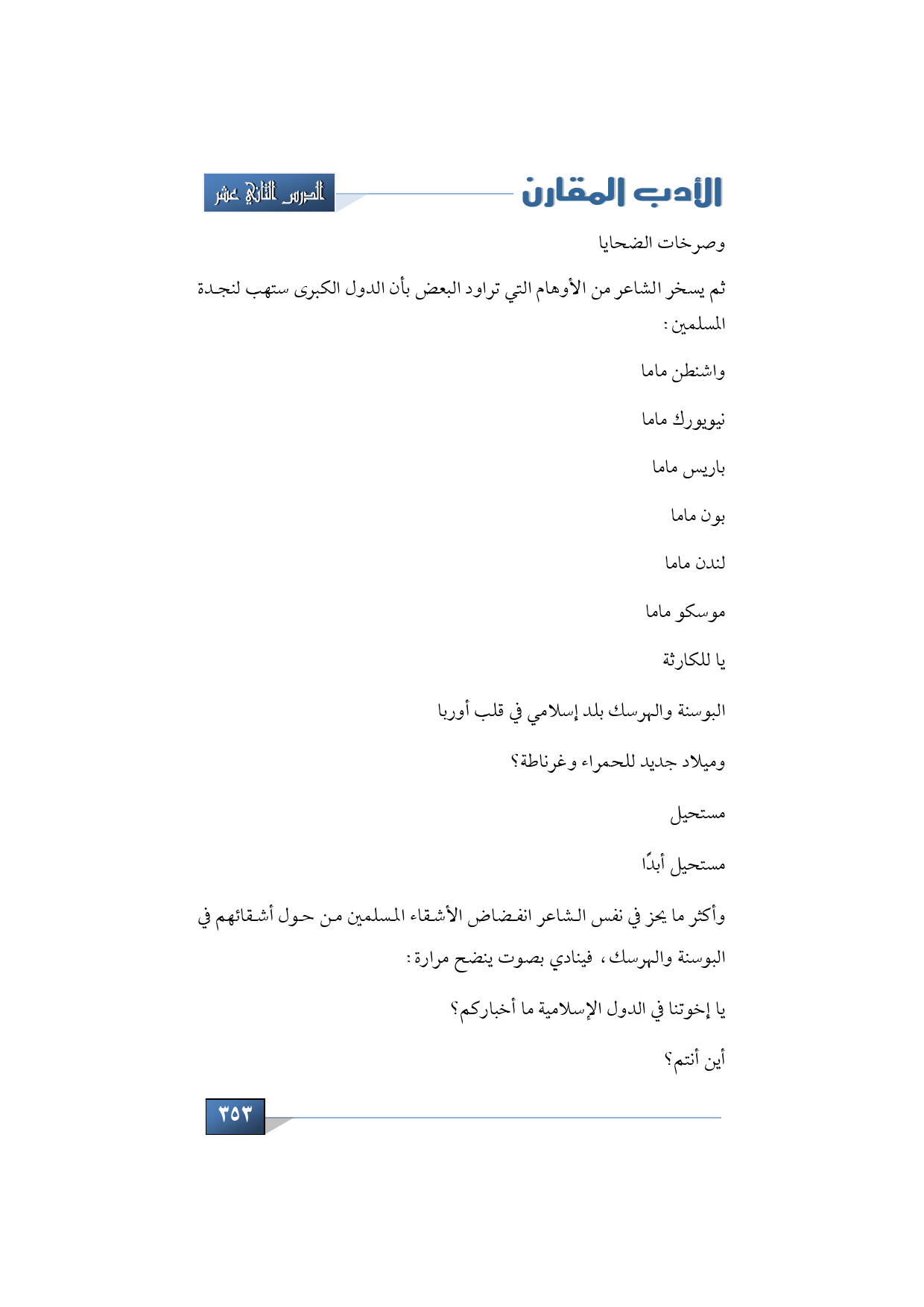 وأكثر ما يحز في نفس الشاعر انفضاض الأشقاء المسلمين من حول أشقائهم في البوسنة والهرسك، فينادي بصوت ينضح مرارة: