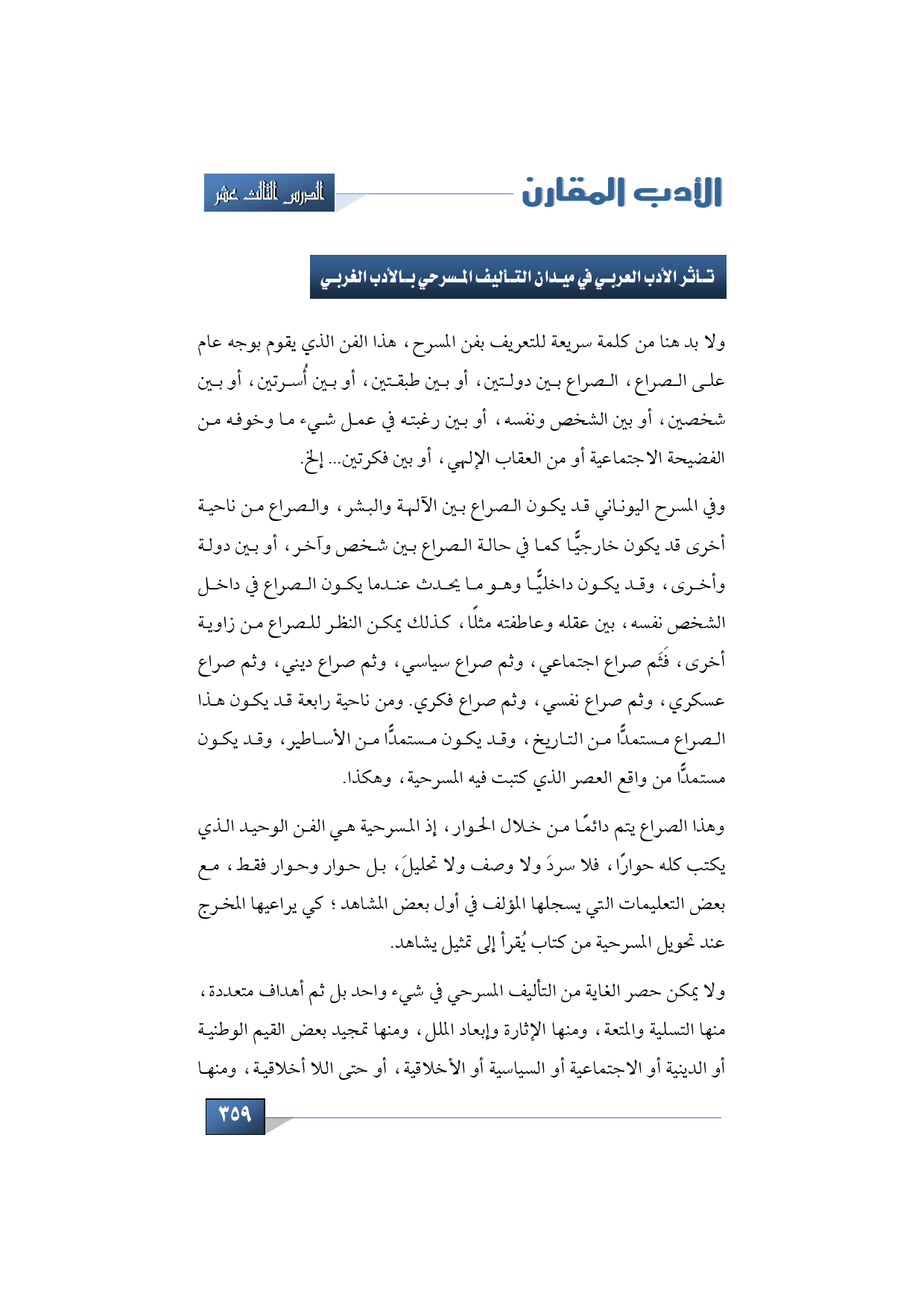 تأثر الأدب العربي في ميدان التأليف المسرحي بالأدب الغربي