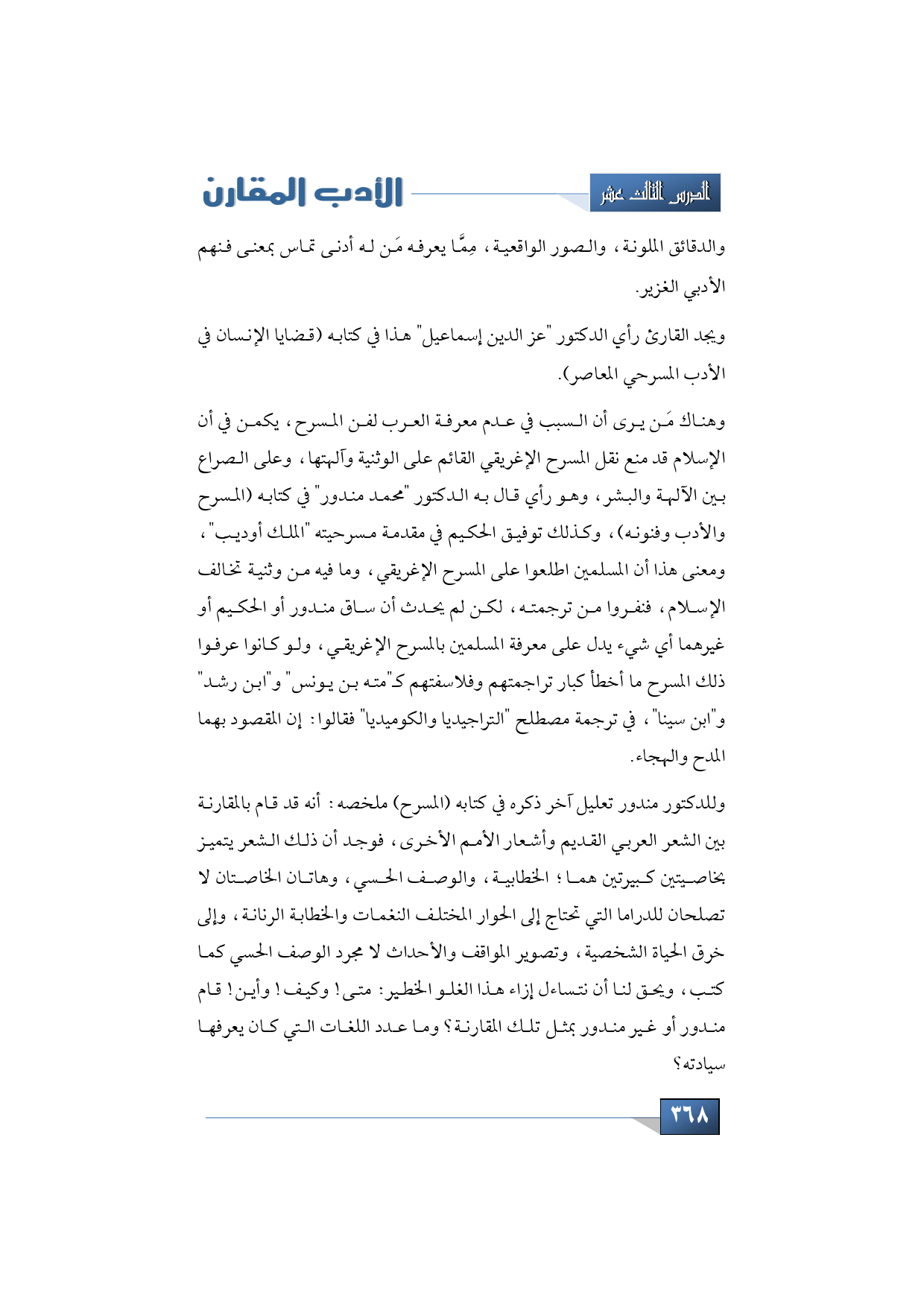 ويجد القارئ رأي الدكتور "عز الدين إسماعيل" هذا في كتابه (قضايا الإنسان في الأدب المسرحي المعاصر).