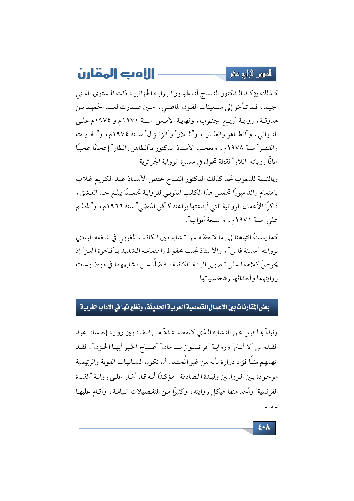 بعض المقارنات بين الأعمال القصصية العربية الحديثة، ونظيرتها في الآداب الغربية
