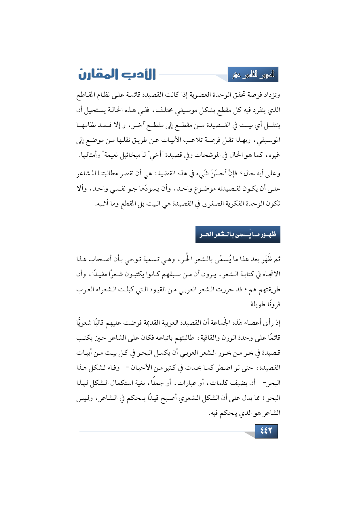 ثم ظَهَر بعد هذا ما يُسمّى بالشعر الحُر، وهي تسمية توحي بأن أصحاب هذا الاتجاه في كتابة الشعر، يرون أن من سبقهم كانوا يكتبون شعرًا مقيدًا، وأن طريقتهم هم؛ قد حررت الشعر العربي من القيود التي كبلت الشعراء العرب قرونًا طويلة.