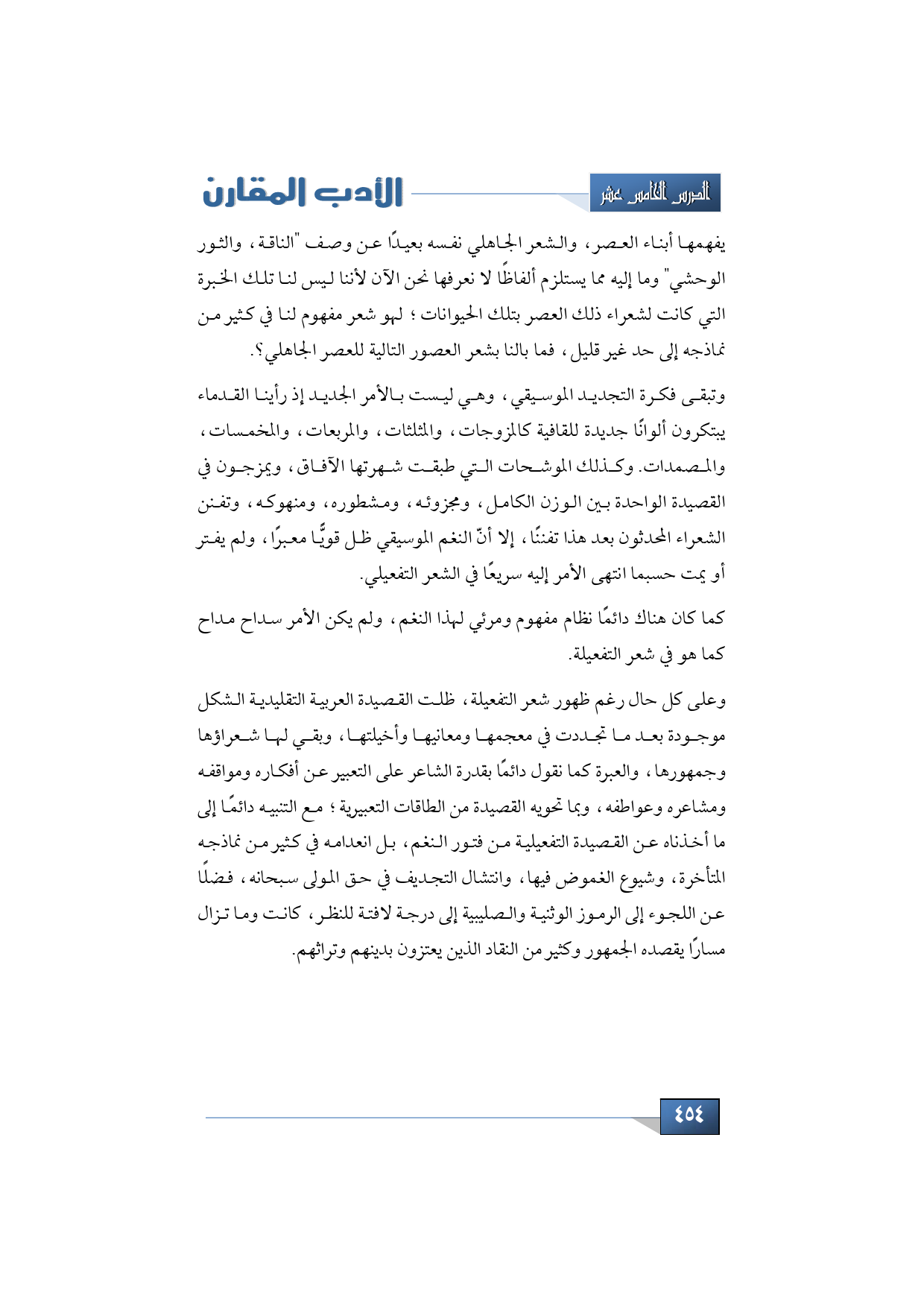 يفهمها أبناء العصر، والشعر الجاهلي نفسه بعيدًا عن وصف "الناقة، والثور الوحشي" وما إليه مما يستلزم ألفاظًا لا نعرفها نحن الآن لأننا ليس لنا تلك الخبرة التي كانت لشعراء ذلك العصر بتلك الحيوانات؛ لهو شعر مفهوم لنا في كثير من نماذجه إلى حد غير قليل، فما بالنا بشعر العصور التالية للعصر الجاهلي؟.