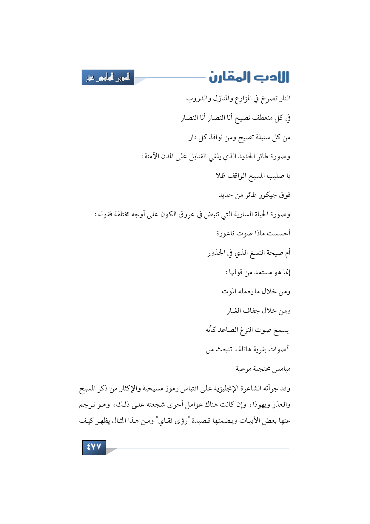 إنما هو مستمد من قولها: ومن خلال ما يعمله الموت، ومن خلال جفاف الغبار، يسمع صوت النزغ الصاعد كأنه أصوات بقرية هائلة، تنبعث من ميامس محتجبة مرعبة.