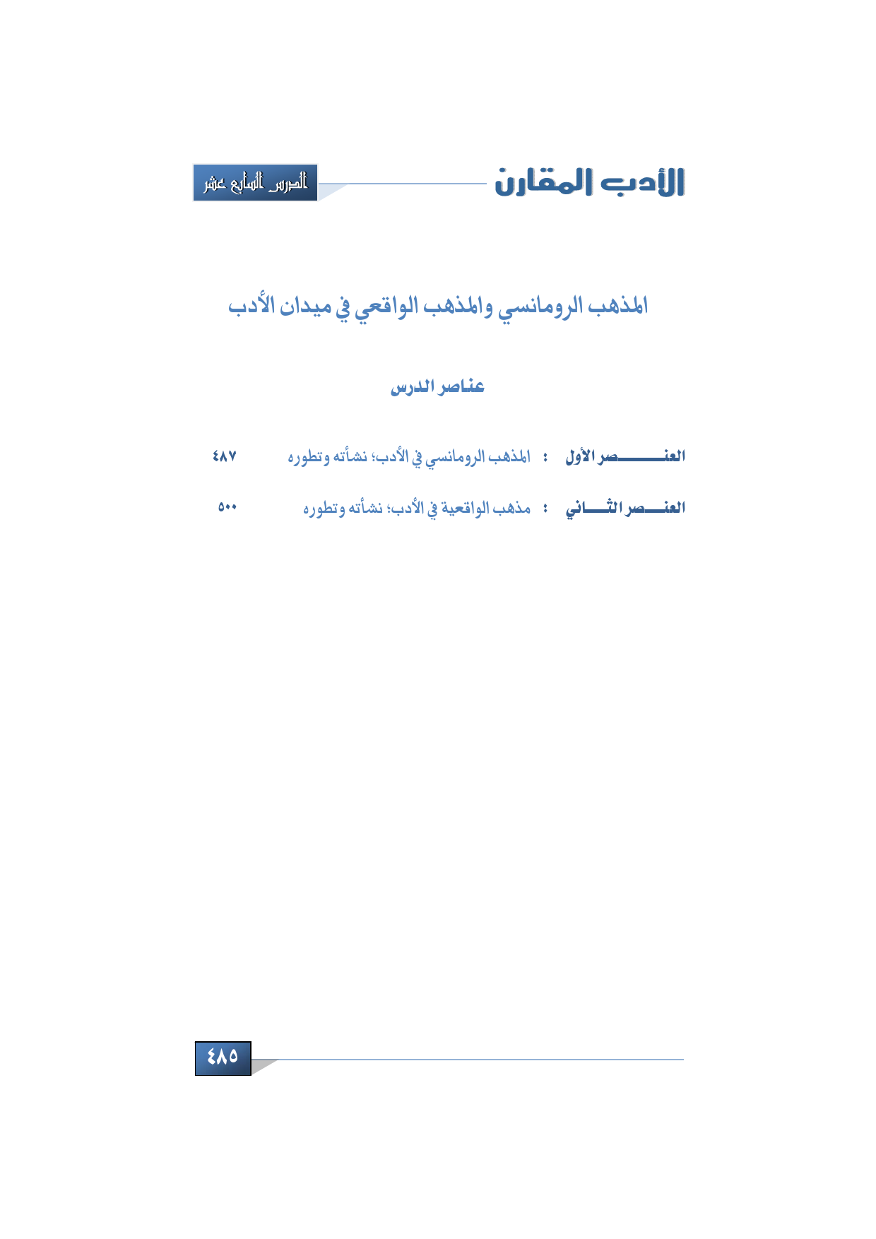 الدرس: 17 المذهب الرومانسي والمذهب الواقعي في ميدان الأدب.