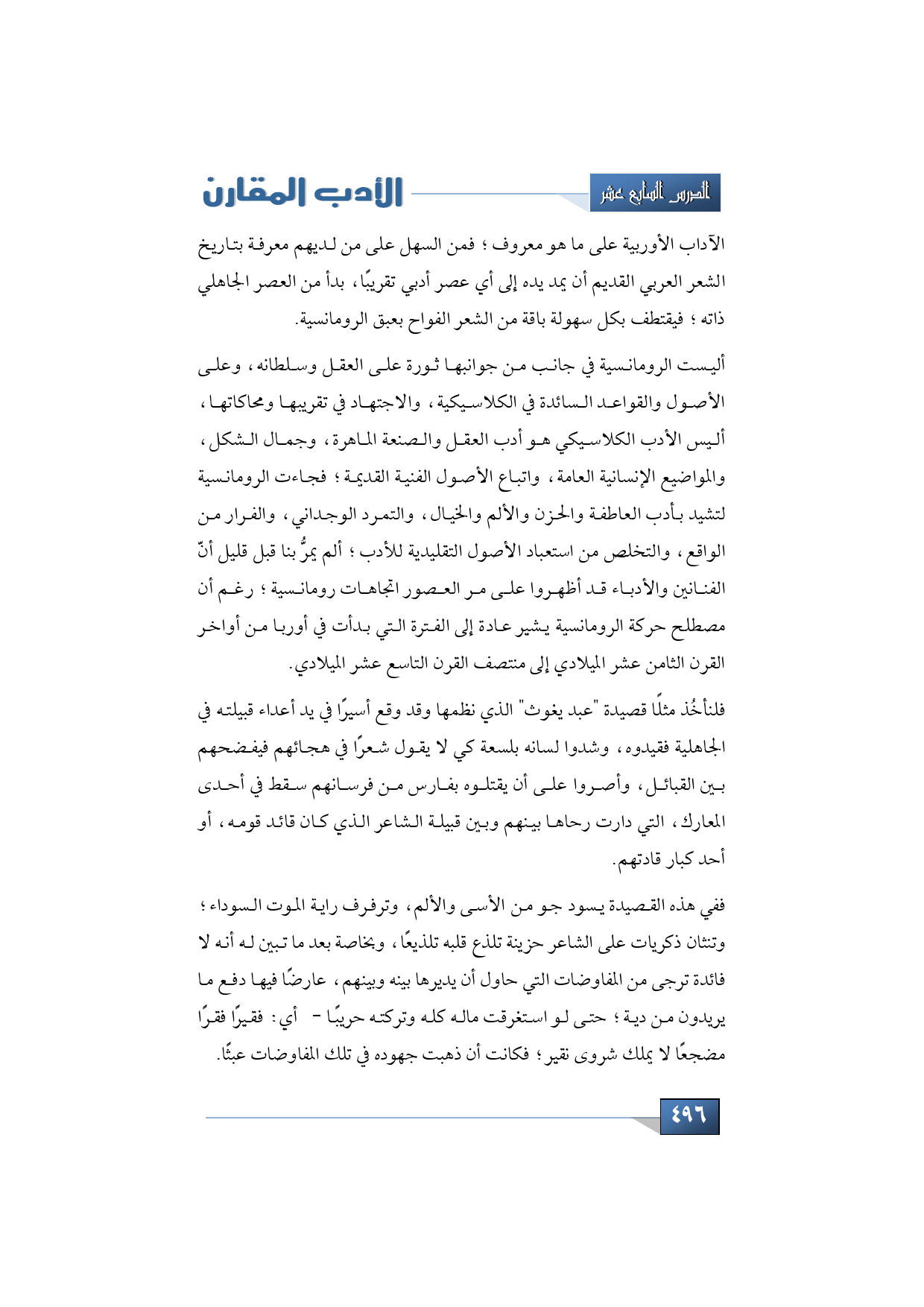 الآداب الأوربية على ما هو معروف؛ فمن السهل على من لديهم معرفة بتاريخ الشعر العربي القديم أن يمد يده إلى إلى أي عصر أدبي تقريبًا، بدأ من العصر الجاهلي ذاته؛ فيقتطف بكل سهولة باقة من الشعر الفواح بعبق الرومانسية.