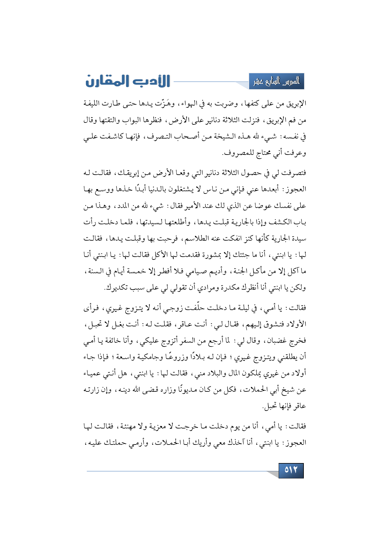 فقالت: يا أمي، أنا من يوم دخلت ما خرجت لا معزية ولا مهنئة، فقالت لها العجوز: يا ابنتي، أنا آخذك معي وأريك أبا الحملات، وأرمي حملتك عليه،