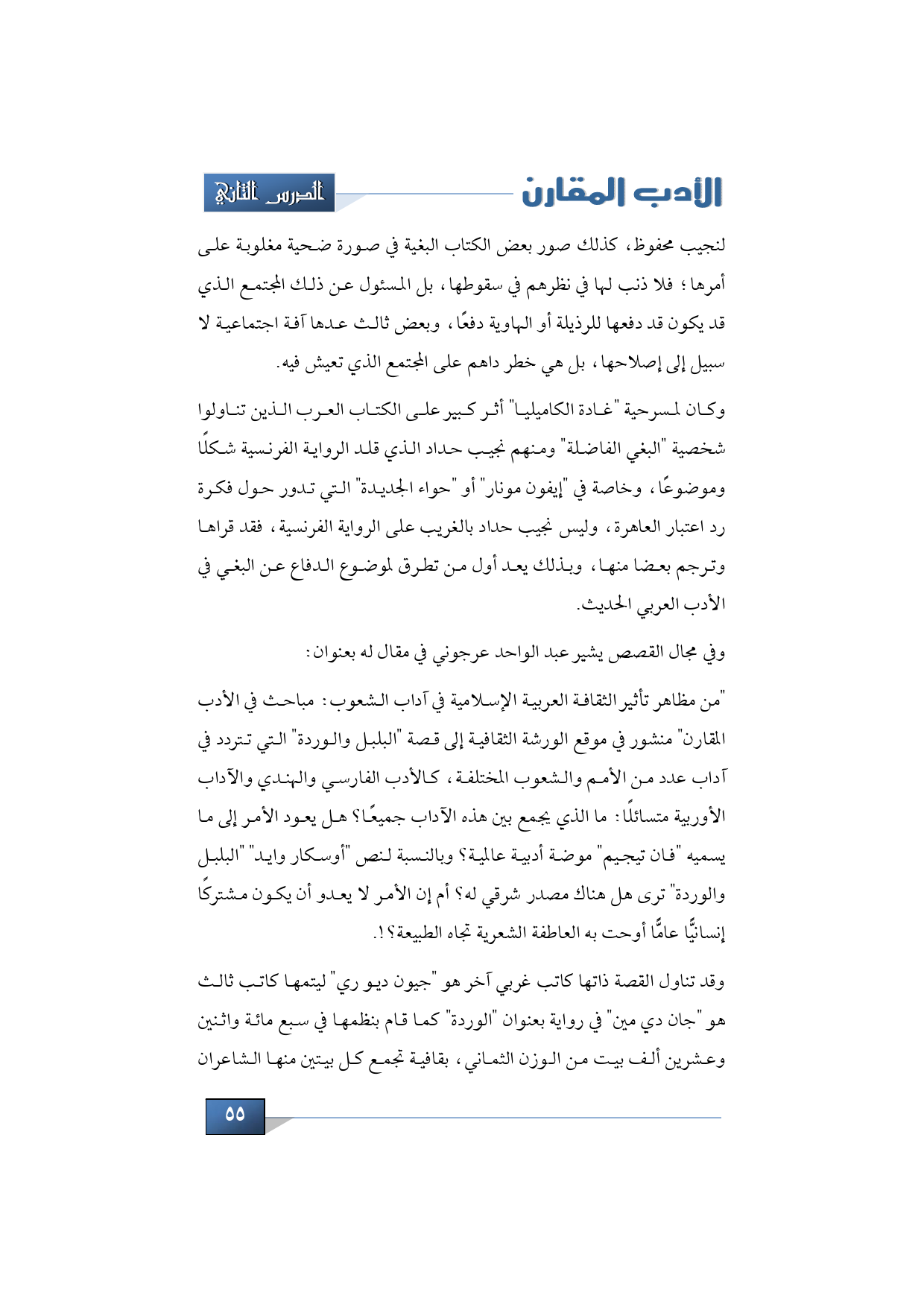 "من مظاهر تأثير الثقافة العربية الإسلامية في آداب الشعوب: مباحث في الأدب المقارن" منشور في موقع الورشة الثقافية إلى قصة "البلبل والوردة" التي تتردد في آداب عدد من الأمم والشعوب المختلفة، كالأدب الفارسي والهندي والآداب الأوربية متسائلًا: ما الذي يجمع بين هذه الآداب جميعًا؟ هل يعود الأمر إلى ما يسميه "فان تيجيم" موضة أدبية عالمية؟ وبالنسبة لنص "أوسكار وايد" "البلبل والوردة" ترى هل هناك مصدر شرقي له؟ أم إن الأمر لا يعدو أن يكون مشتركًا إنسانيًّا عامًّا أوحت به العاطفة الشعرية تجاه الطبيعة؟!.