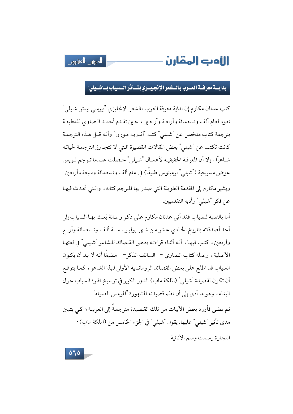 بداية معرفة العرب بالشعر الإنجليزي بتأثر السياب بـ"شِلي"