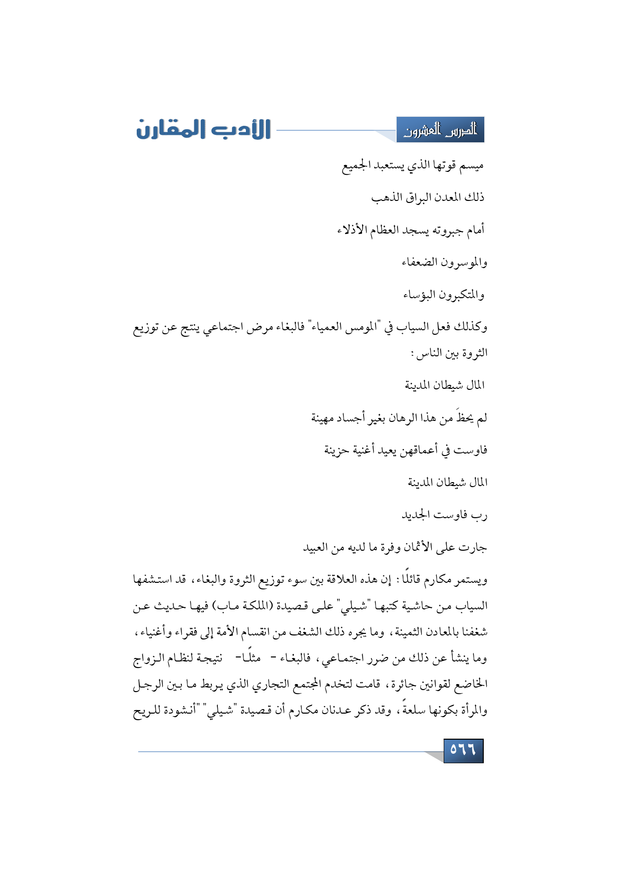 ويستمر مكارم قائلًا: إن هذه العلاقة بين سوء توزيع الثروة والبغاء، قد استشفها السياب من حاشية كتبها "شيلي" على قصيدة (الملكة ماب) فيها حديث عن شغفنا بالمعادن الثمينة، وما يجره ذلك الشغف من انقسام الأمة إلى فقراء وأغنياء، وما ينشأ عن ذلك من ضرر اجتماعي، فالبغاء -مثلًا- نتيجة لنظام الزواج الخاضع لقوانين جائرة، قامت لتخدم المجتمع التجاري الذي يربط ما بين الرجل والمرأة بكونها س لعةً، وقد ذكر عدنان مكارم أن قصيدة "شيلي" "أنشودة للريح