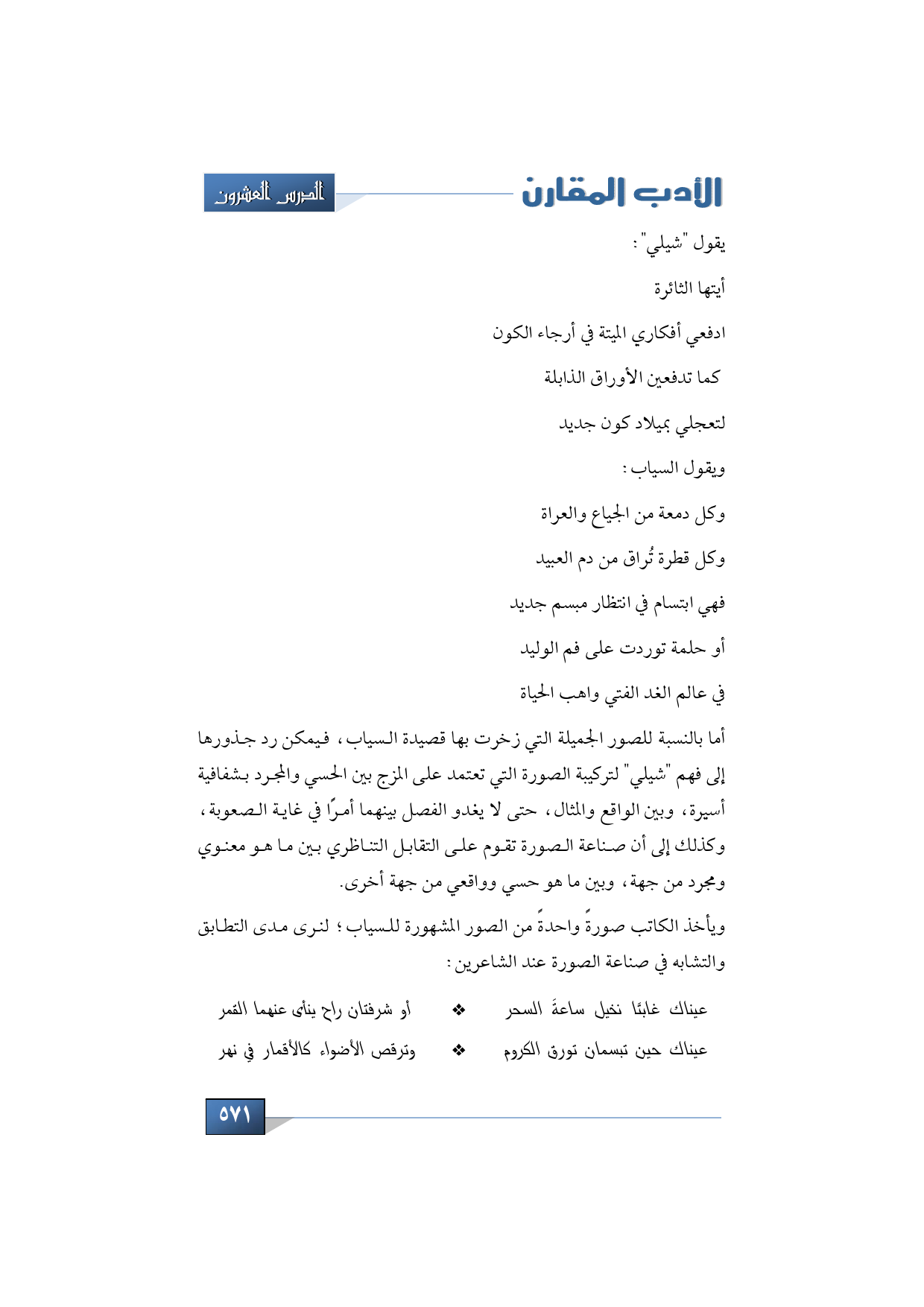 أما بالنسبة للصور الجميلة التي زخرت بها قصيدة السياب، فيمكن رد جذورها إلى فهم "شيلي" لتركيبة الصورة التي تعتمد على المزج بين الحسي والمجرد بشفافية أسيرة، وبين الواقع والمثال، حتى لا يغدو الفصل بينهما أمرًا في غاية الصعوبة، وكذلك إلى أن صناعة الصورة تقوم على التقابل التناظري بين ما هو معنوي ومجرد من جهة، وبين ما هو حسي وواقعي من جهة أخرى.