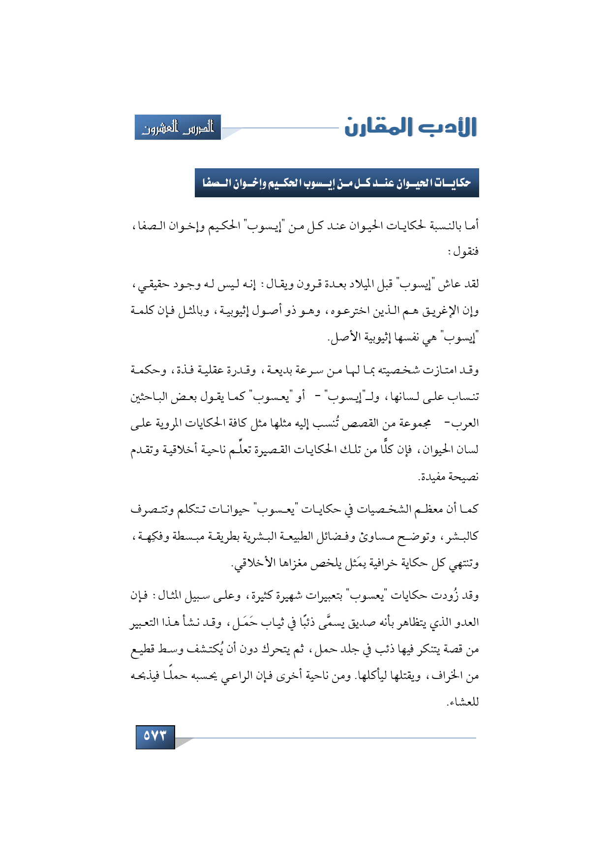 حكايات الحيوان عند كل من إيسوب الحكيم وإخوان الصفا