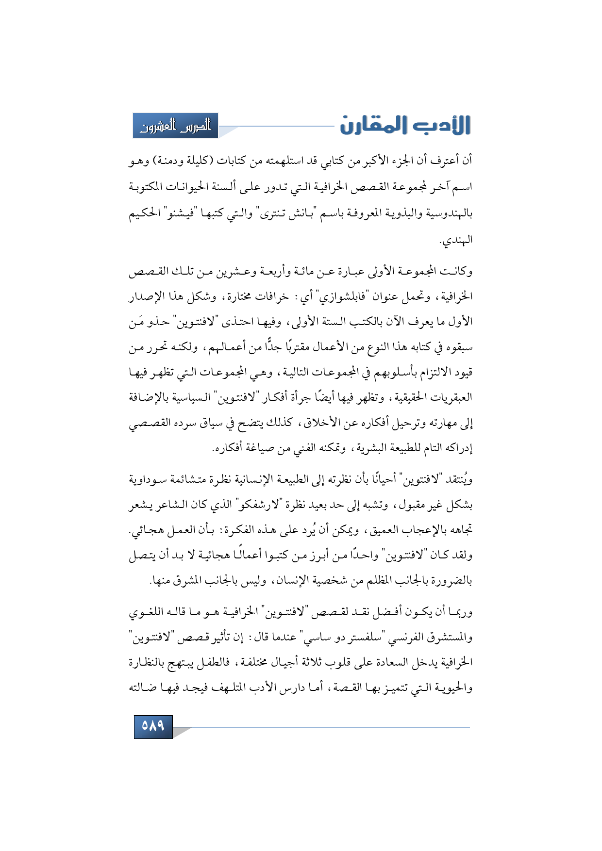 وربما أن يكون أفضل نقد لقصص "لافنتوين" الخرافية هو ما قاله اللغوي والمستشرق الفرنسي "سلفستر دو ساسي" عندما قال: إن تأثير قصص "لافنتوين" الخرافية يدخل السعادة على قلوب ثلاثة أجيال مختلفة، فالطفل يبتهج بالنظارة والحيوية التي تتميز بها القصة، أما دارس الأدب المتلهف فيجد فيها ضالته