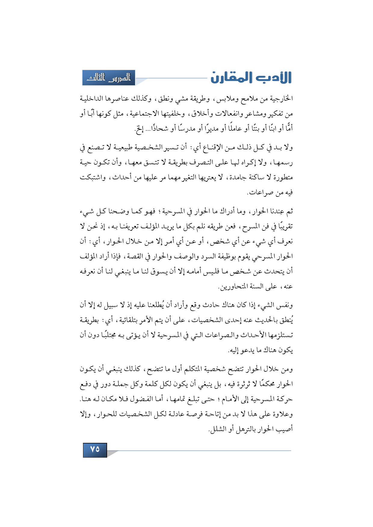 ولا بد في كل ذلك من الإقناع أي: أن تسير الشخصية طبيعية لا تصنع في رسمها، ولا إكراه لها على التصرف بطريقة لا تتسق معها، وأن تكون حية متطورة لا ساكنة جامدة، لا يعتريها التغير مهما مر عليها من أحداث، واشتبكت فيه من صراعات.