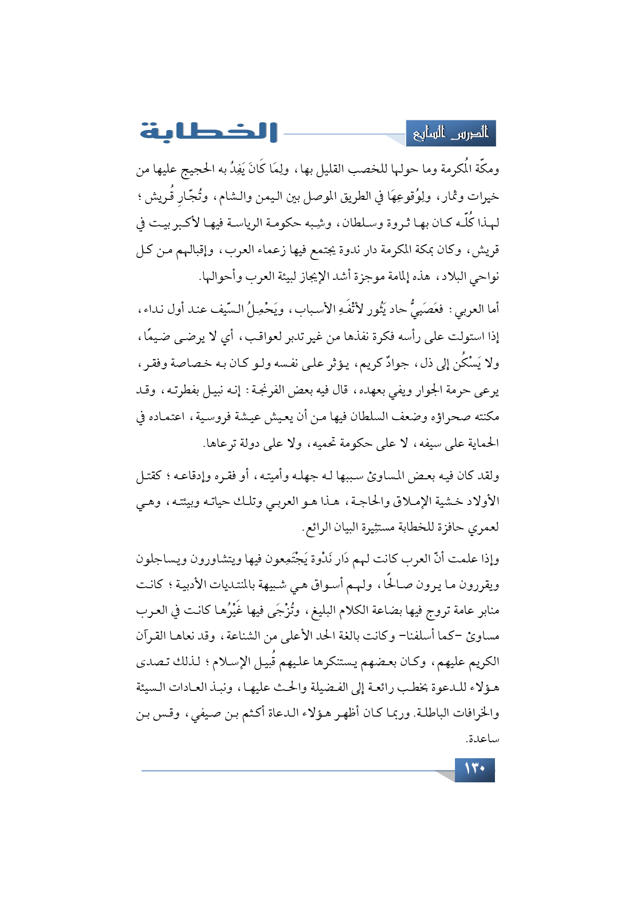 ولقد كان فيه بعض المساوئ سببها له جهله وأميته، أو فقره وإدقاعه؛ كقتل الأولاد خشية الإملاق والحاجة. هذا هو العربي وتلك حياته وبيئته، وهي لعمري حافزة للخطابة مستثِيرة البيان الرائع.