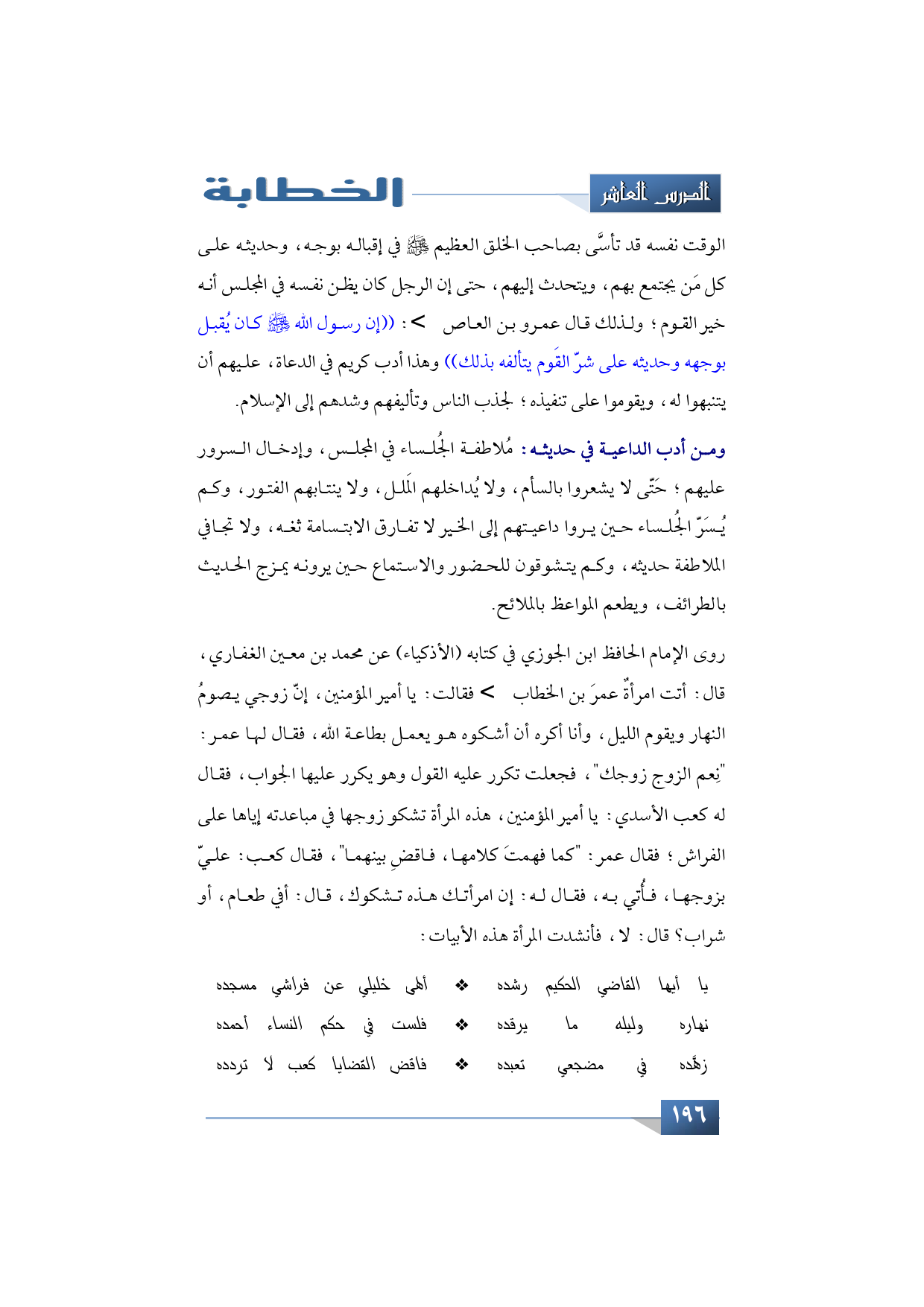 يا أيها القاضي الحكيم رشده ... ألهَى خليلي عن فراشي مسجده