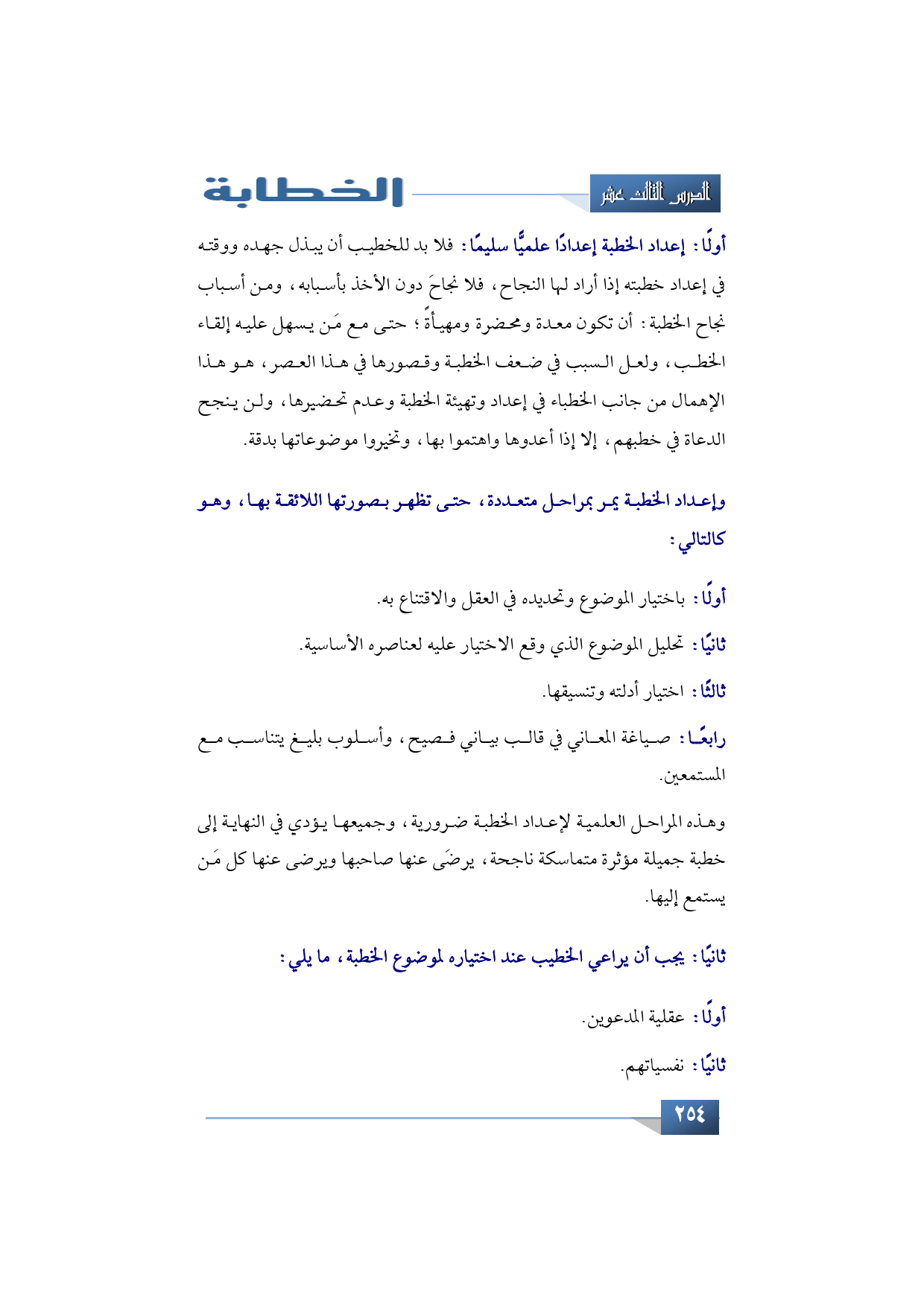 رابعًا: صياغة المعاني في قالب بياني فصيح، وأسلوب بليغ يتناسب مع المستمعين.
