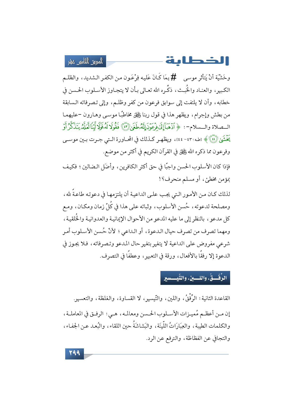 القاعدة الثانية: الرِّفْقُ واللين والتّيسير لا القساوة والغلظة والتعسير.