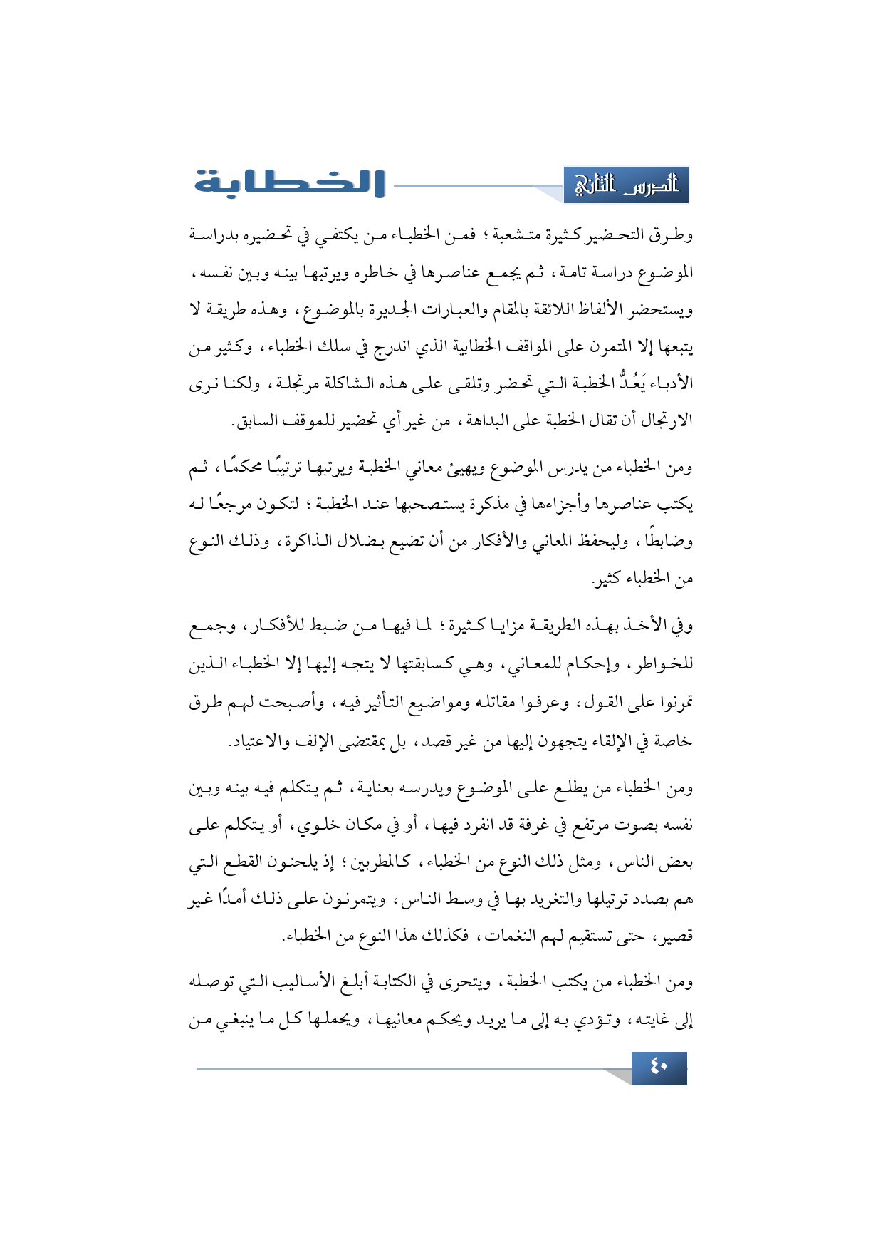 ومن الخطباء من يكتب الخطبة، ويتحرى في الكتابة أبلغ الأساليب التي توصله إلى غايته، وتؤدي به إلى ما يريد ويحكم معانيها، ويحملها كل ما ينبغي من
